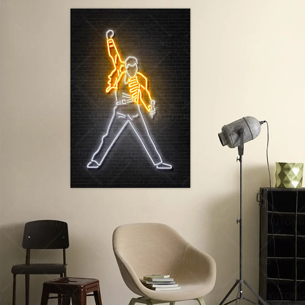 Неоновые художественные постеры и принты Freddy Mercury, Настенная Картина на холсте с изображением музыкальной королевы, подарок, украшение для дома, светлый постер без светодиодный