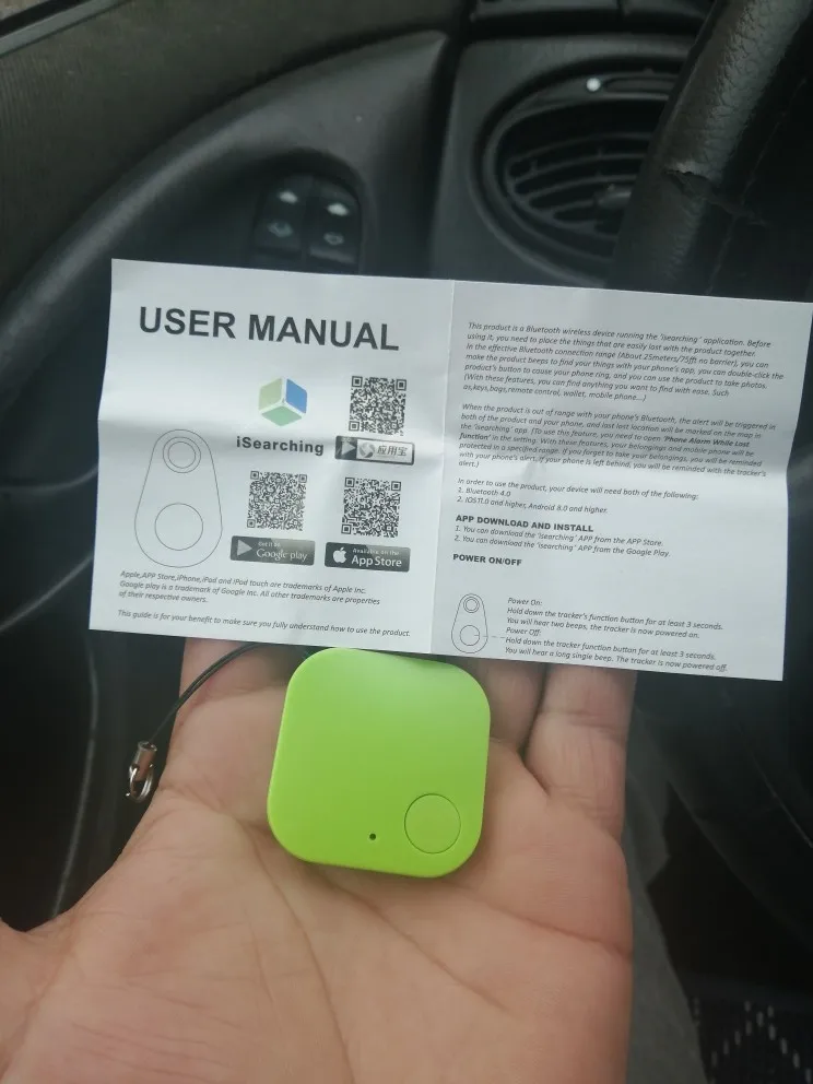 Особенности и дополнительные сведенияКольца на ваши товары: Часто ли вы сталкиваетесь с такими проблемами-вы не можете найти ключ, бумажник или телефон, когда он находится рядом, но не из виду? Ну, искатель ключей может легко Вам помочь! Вы можете просто нажать кнопку вызова в приложении или кнопку звукового сигнала, если iPhone, этот Bluetooth finder будет звуковой сигнал и приведет вас, чтобы найти их. Если вы забудете, где разместить свой телефон, вы можете дважды щелкнуть кнопку на подключенном finder, телефон будет звонить, даже когда он находится в тишине.Умный анти-потерянный сигнал тревоги: до тех пор, пока товар находится вне диапазона (обычно диапазон Bluetooth составляет около 5-15 метров в помещении и 50 метров больше всего в открытой местности), ваш смартфон и этот видоискатель ключей будут оповещать вас. Не так просто снова оставить ключи в ресторане.Отсоединенная запись местоположения: как только ваши элементы выйдут из диапазона и будут потеряны, приложение будет автоматически записывать последнее место, где этот ключевой искатель отключен от вашего телефона, таким образом, вы можете определить приблизительное местоположение на основе последней записанной точки, показанной на карте приложения, чтобы найти ваши недостающие предметы. Когда вы приблизились к своему lost finder в диапазоне подключения, finder и приложение автоматически подключатся, тогда вы можете позвонить своим элементам.Простота подключения и использования: удерживайте кнопку на finder, пока не услышите Два звуковых сигнала, чтобы включить его (таким же образом, чтобы выключить). Загрузите приложение на свой телефон и Включите Bluetooth телефона для поиска и подключения ключа. Вот и все. Затем вы можете использовать его, чтобы отслеживать ваши товары и наслаждаться удобством, которое он приносит вам.Сверхдолгий Срок службы батареи и широкая совместимость: умный ключ finder поставляется со встроенной батареей CR2032. Он может длиться до 6 месяцев и легко заменяться. Этот ключевой искатель совместим с устройствами Apple iOS (7,0 или выше) и Android (4,3 или выше) с Bluetooth 4,0. Вы можете скачать приложение в Apple Store или Google PlayПосылка включает в себя:1 * мини-трекер