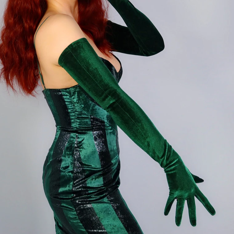 Новые сексуальные длинные зеленые бархатные зимние перчатки с пальцами 68-58-38-22 см Бесплатная доставка