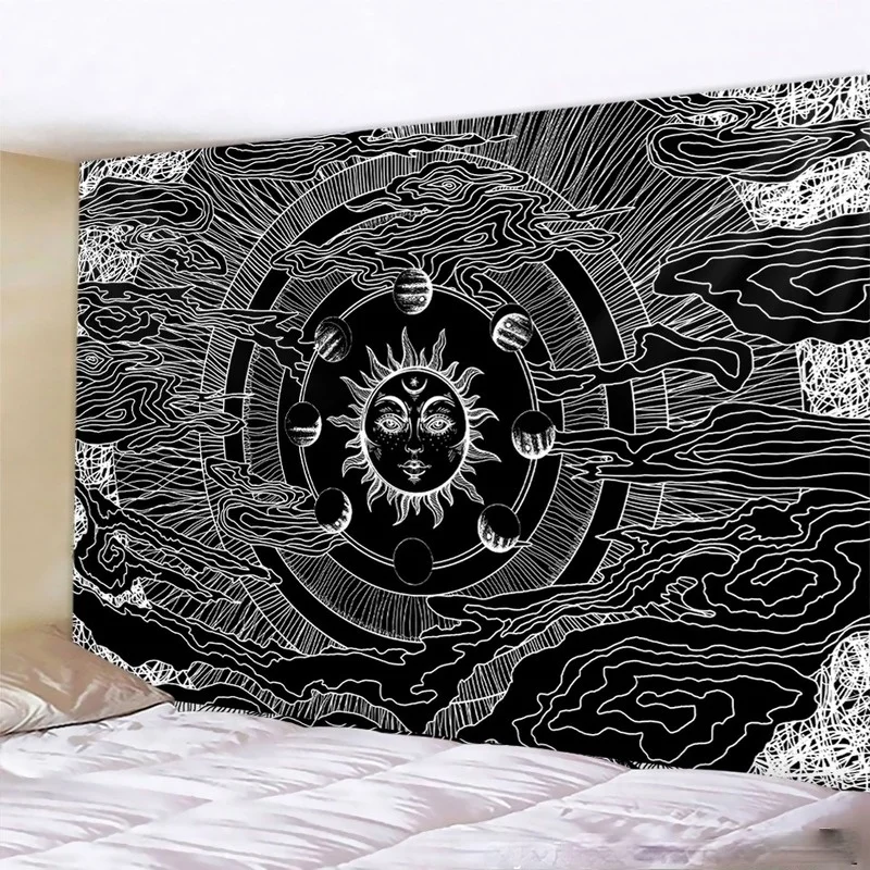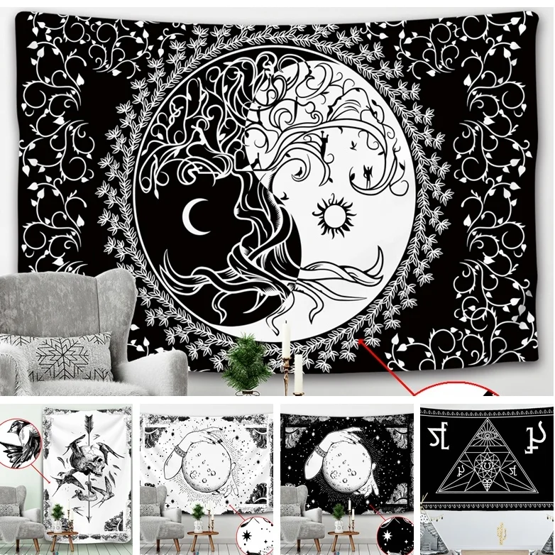 Гобелен с черно-белыми карточками Таро, черная кошка, Настенный ГобеленручнойхиппилунаВолкведро, украшение с черепом, готический домашний декор