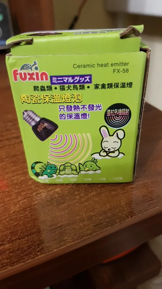 Тип цоколя: E27Мощность: 25 Вт/50 Вт/75 Вт/100 ВтНапряжение: 220-230 ВМатериал: керамикаЦвет: черныйТехнические характеристики: около 50 мм x 60 мм/1,97 x 2.36inОсобенности:Примечание: поверхность Горячая, не прикасайтесь к ней непосредственно во время использования.1. Он имеет хорошее нагревательное свойство, но не выдает стимулирующий светильник, который повлияет на сон домашних животных.2. Устойчив к воздействию, может быть подвержен воздействию воды, может нагреваться в течение длительного времени.