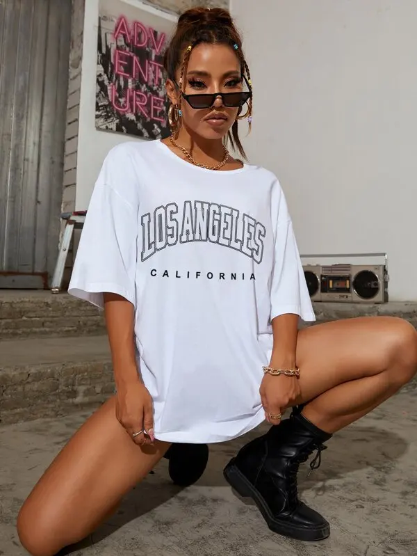 Футболка женская оверсайз с коротким рукавом и круглым вырезом