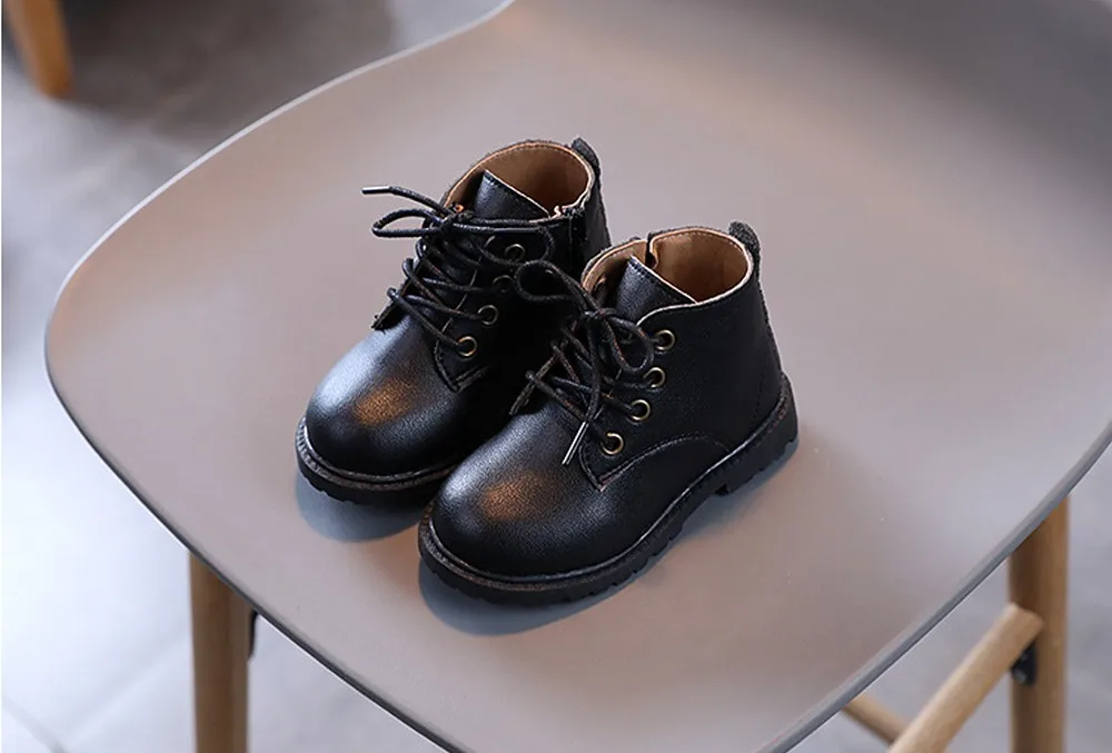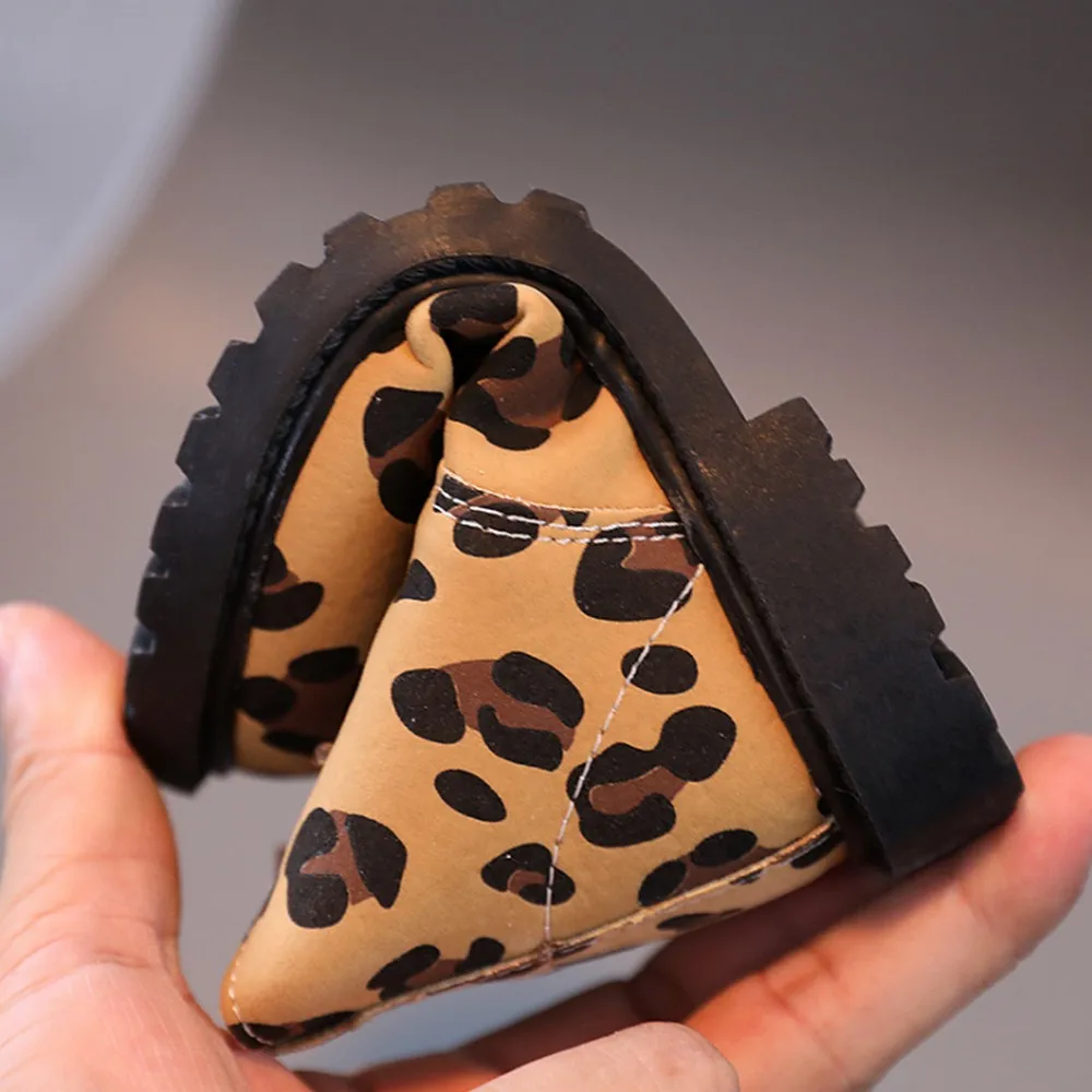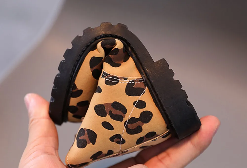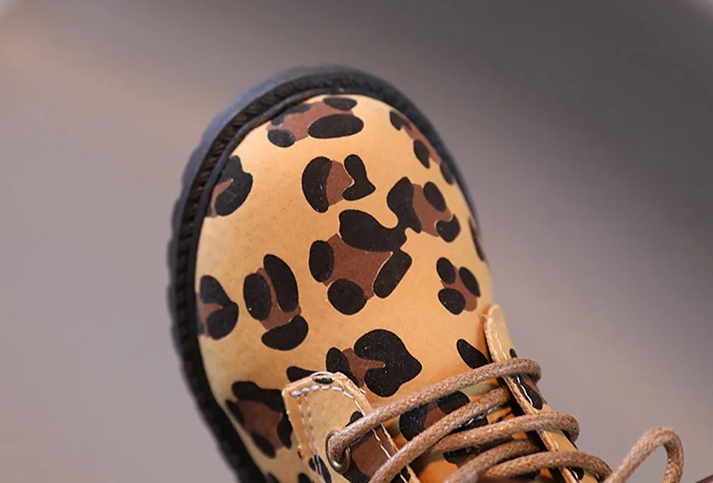 Ботинки-мартинсы для мальчиков и девочек, ПУ кожа, леопард, короткие сапоги для принцесс, на резиновой подошве, обувь для малышей 21-30, Осень-зима