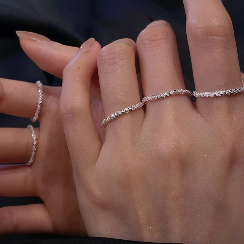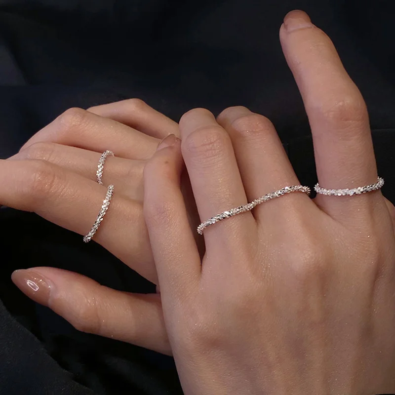 2021 модного серебристого цвета сверкающие кольца для женщин простой Стиль кольца Свадебные украшения для путешествий ювелирных изделий декоративная подарки Вечерние