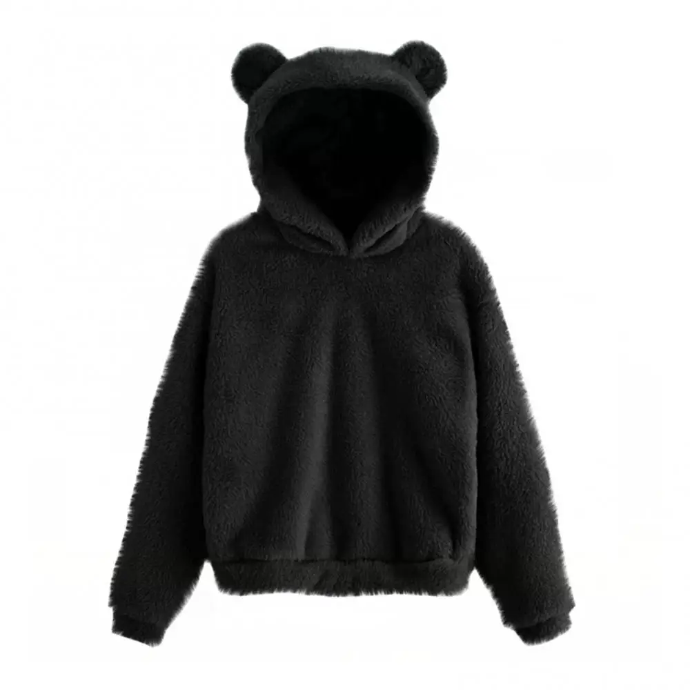 Осенне-зимняя женская однотонная Повседневная модная толстовка с длинными рукавами и капюшоном с кроличьими ушками плюшевая теплая Повседневная Рабочая Толстовка