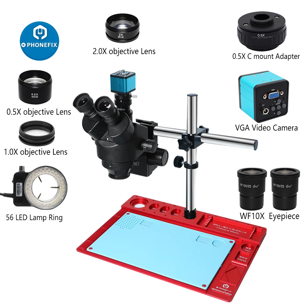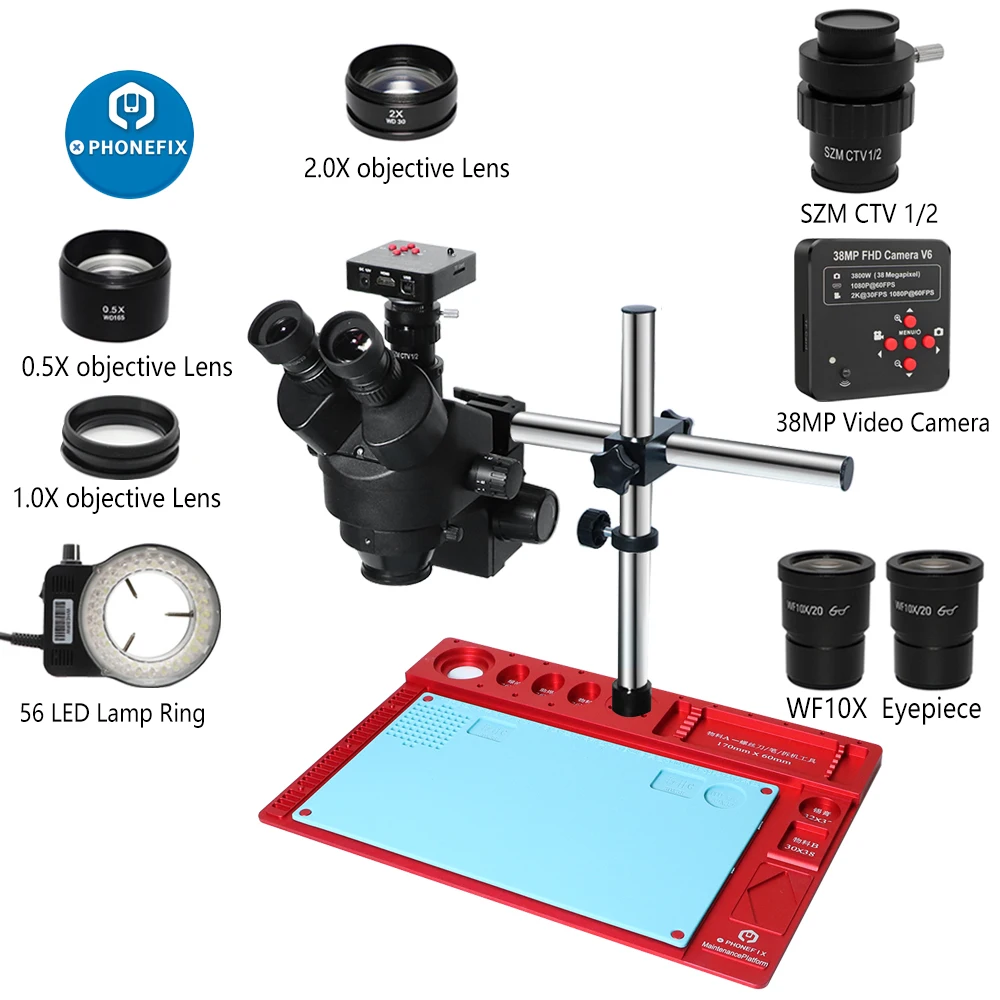 3,5x-90X Simul-Focal Тринокулярный Стерео микроскоп VGA / 38MP HDMI Цифровая микроскопия камера телефон пайка PCB ювелирные изделия Часы Ремонт