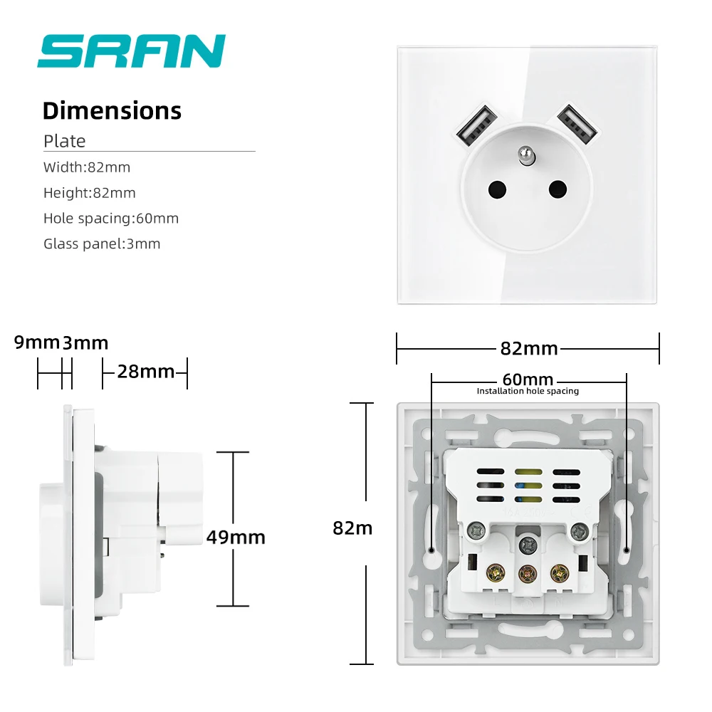 Стандартная розетка SRAN FR, розетка с Usb-портом для зарядки, а, 1...