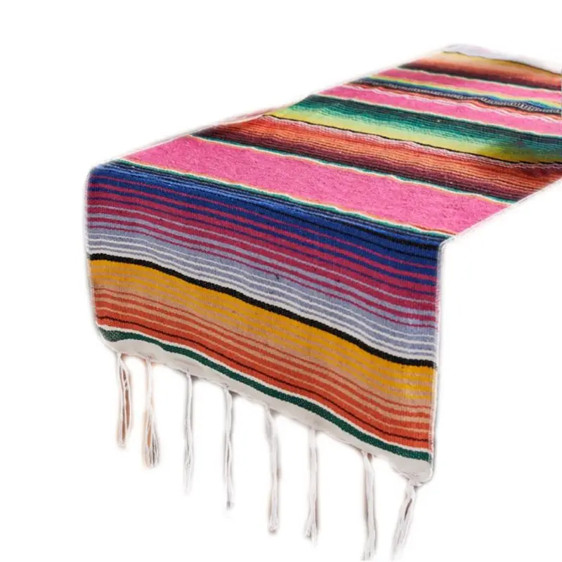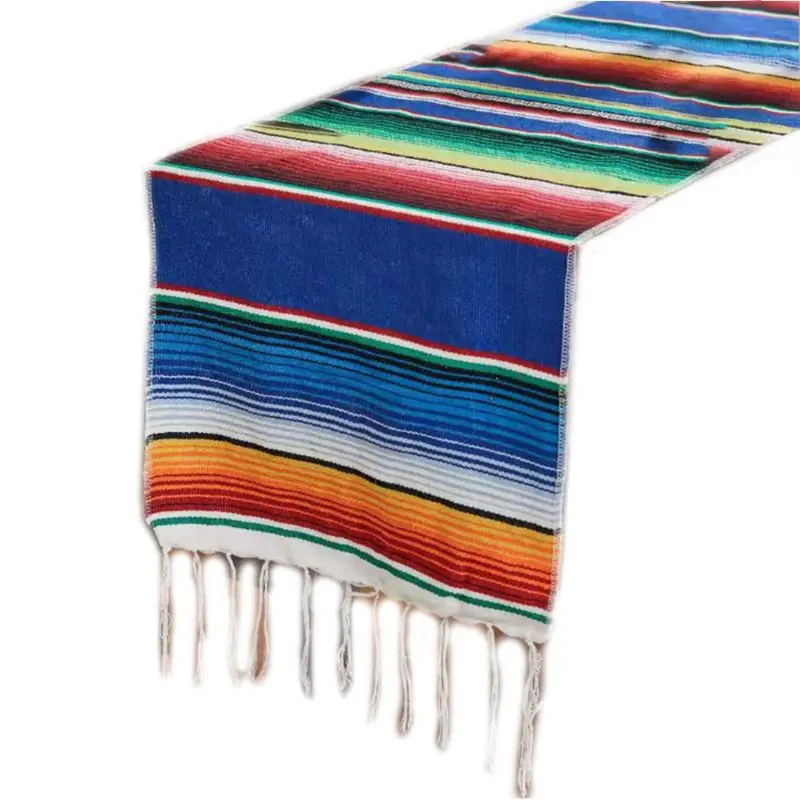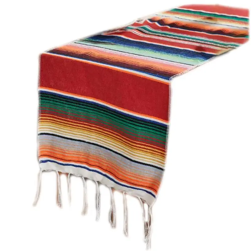 Мексиканское одеяло 35x213 см, яркие радужные полосы, тканая скатерть, хлопковая скатерть с бахромой, праздничный домашний стол для вечерние НКИ, LX0C