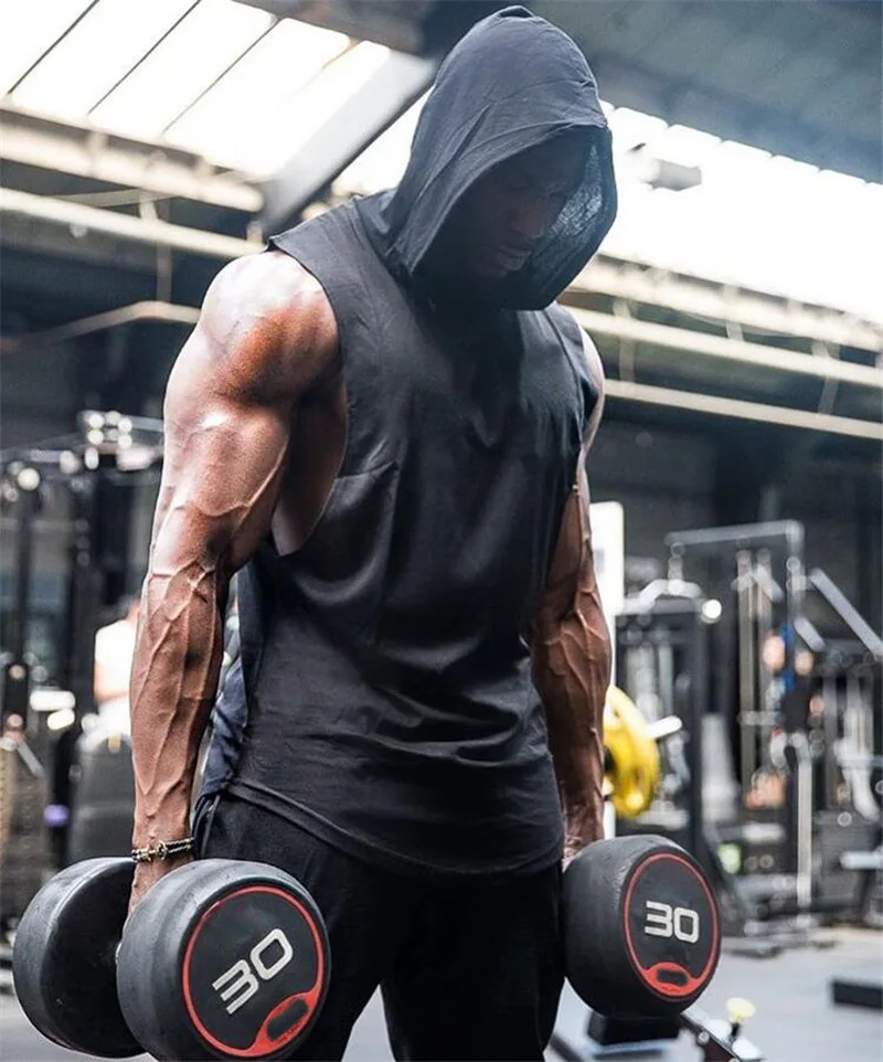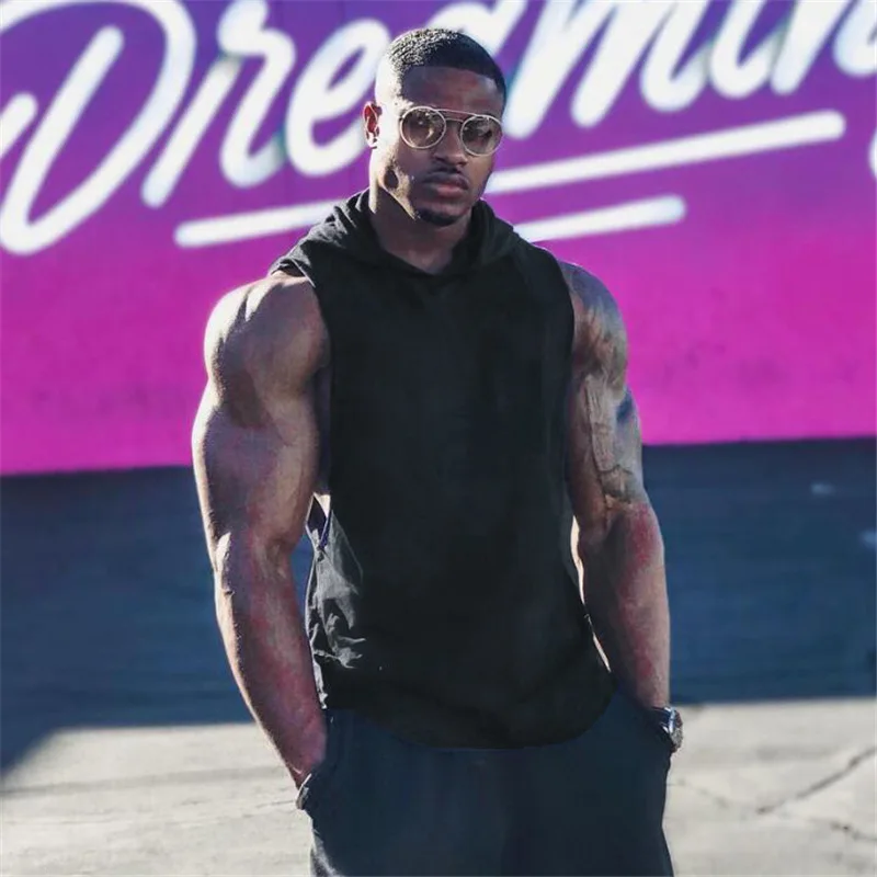 Майка Мужская спортивная с капюшоном, хлопок, майка без рукавов, майка для бодибилдинга, фитнеса, одежда для спортзала, лето