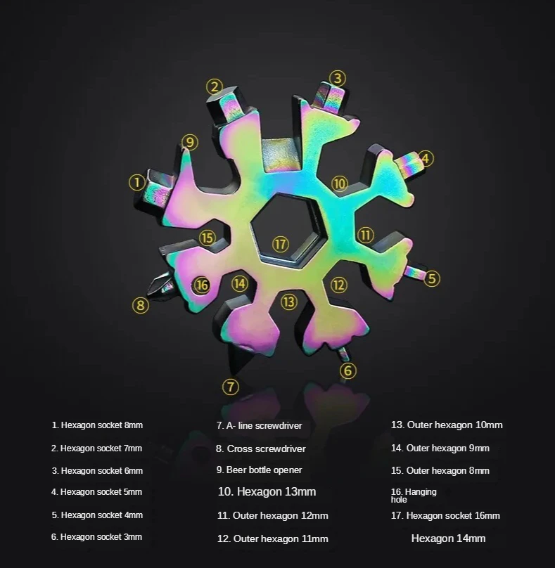18 в 1 Снежинка инструмент Многофункциональный гаечный ключ восьмиугольная форма многоцелевой лагерь выживание на открытом воздухе Спорт Поход