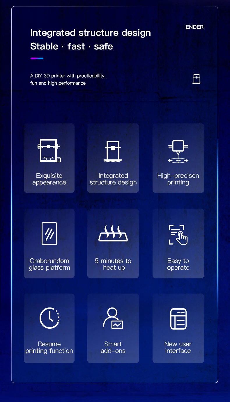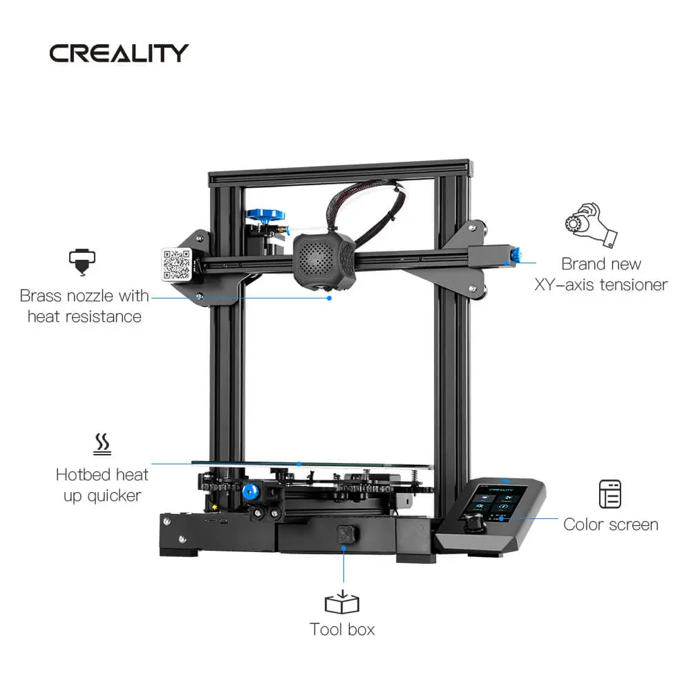 Обновленная материнская плата с бесшумными шаговыми драйверами TMC2208: по сравнению с Ender-3 andEnder-3 Pro, конструкция V2, которая обеспечивает пользователям извне коробки и бесшумные обновления (более тихие 3D принтеры).Новый пользовательский интерфейс и цветной экран 4,3 дюйма: с цветным экраном 4,3 дюйма и переработанным пользовательским интерфейсом, приоритетом которого является простота использования, Ender-3 V2-идеальный выбор для начинающих.Карборундовый стеклянный слой: улучшенное прилипание при необходимости и легкое удаление отпечатков при охлаждении.Упрощение обслуживания: предустановленные ремни X и YНатяжение еще более упрощает печать на машине в лучшем виде.Легко регулируйте натяжение ремня для поддержания точности.Ручка экструдера: заменить нить накала внутри и снаружи еще проще.Новое сопло: латунное сопло с термостойкостью.Ящик для хранения: забудьте, куда положили пинцет или снипки? Встроенный отсек для хранения предметов первой необходимости для 3D-принтера.