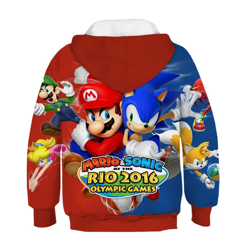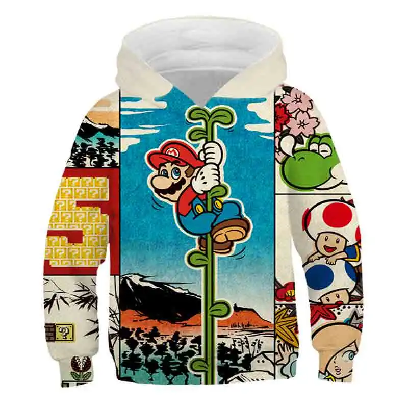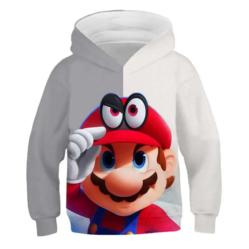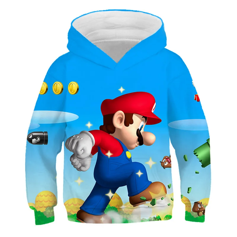 Детские толстовки с капюшоном, мультяшный рисунок Супер Марио для м...