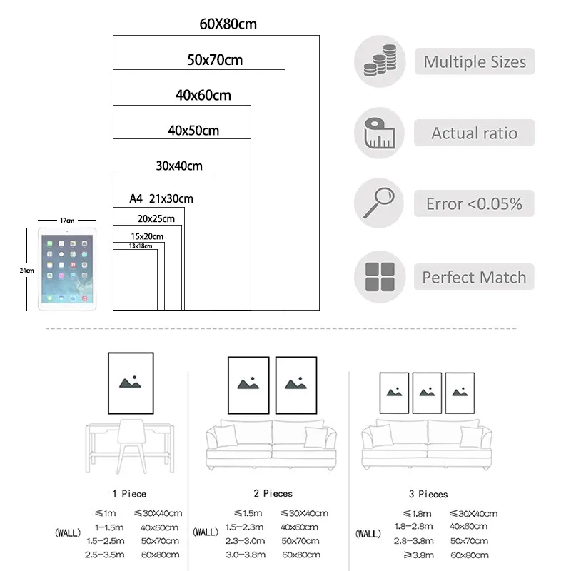 2 . 33x50 см [13x20 дюймов]; 41x60 см [16x24 дюйма]; 50x75 см [20x30 дюймов]; 60x90 см [24x36 дюймов]; 71x106 см [28x42 дюйма]; 80x120 см [32x48 дюймов];