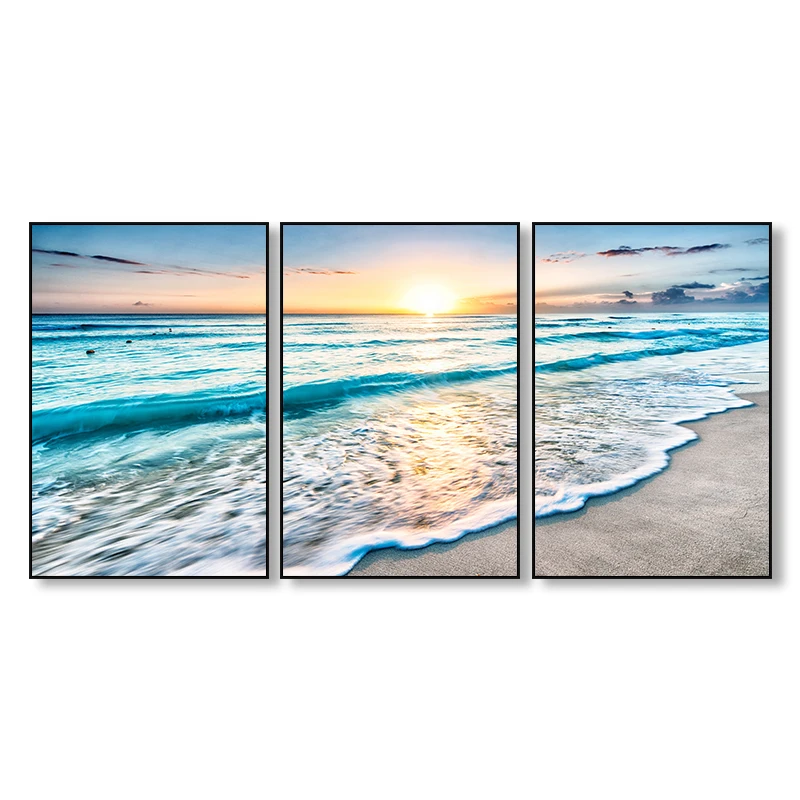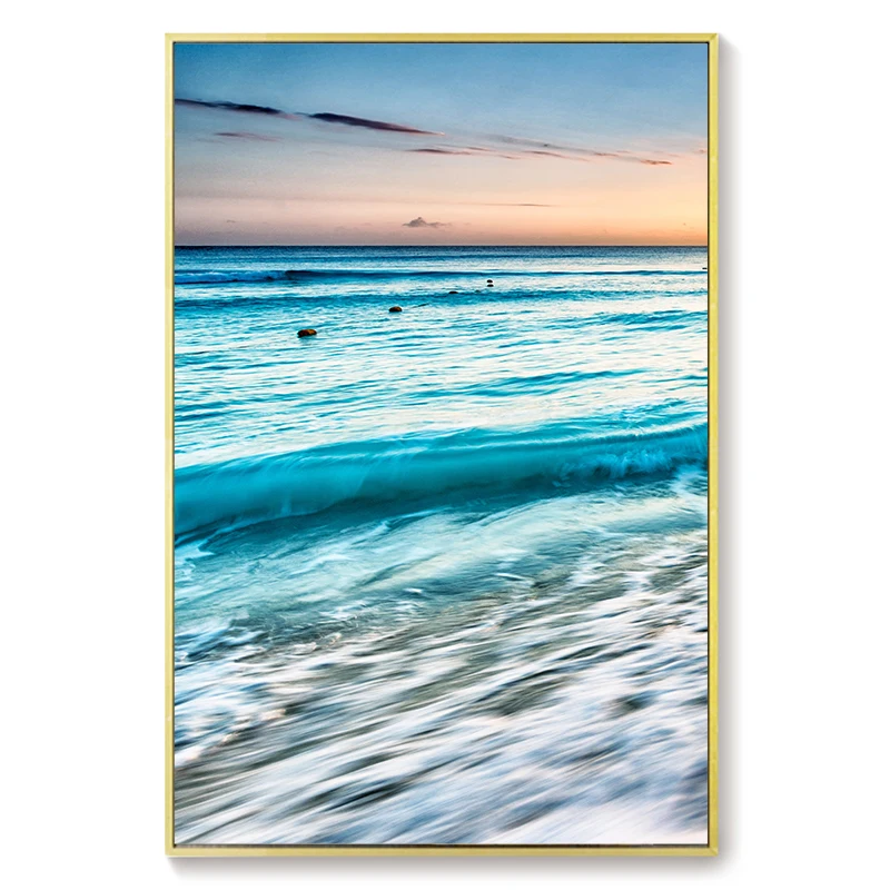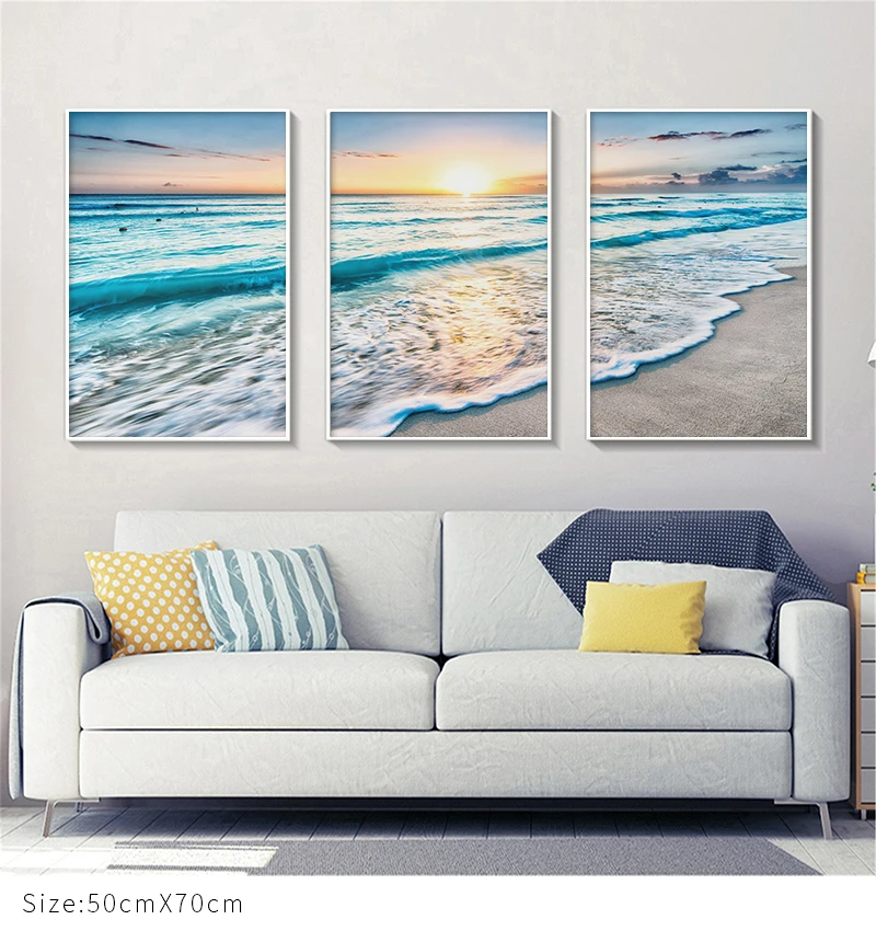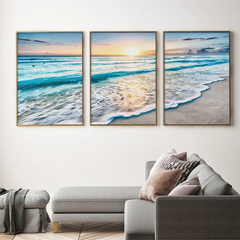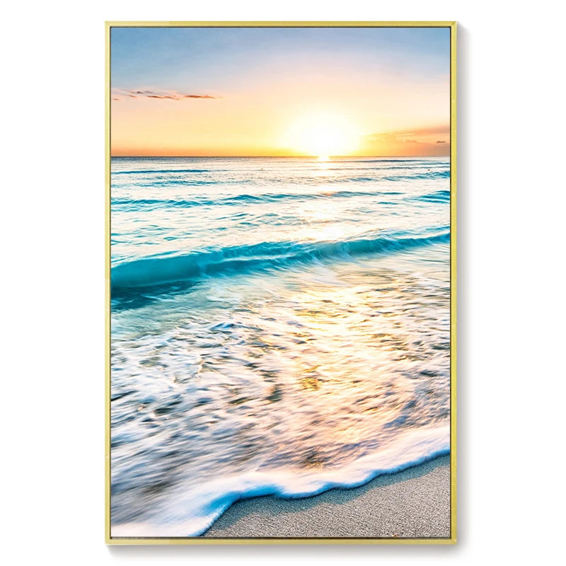 Декоративная картина восход солнца, светильник свет, берег, пляж, холст, плакат, синий морской пейзаж, картина, волны, холст, печать, настенное искусство