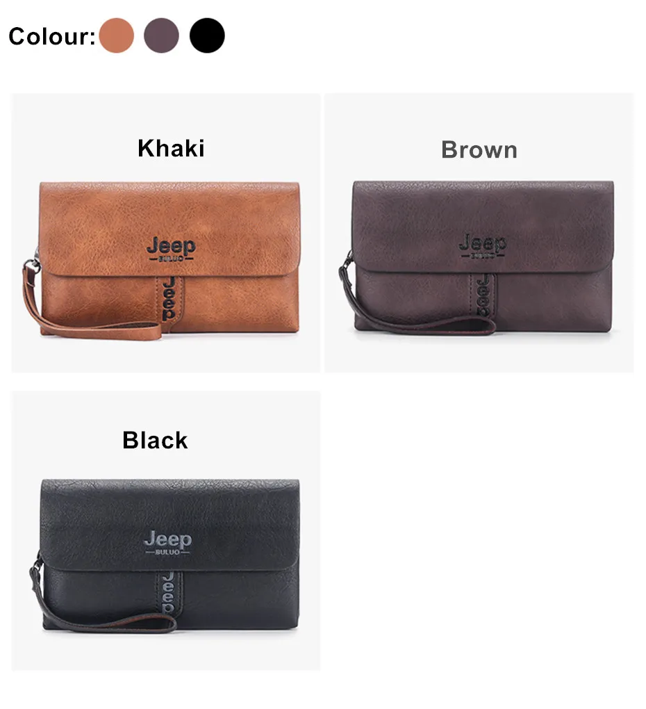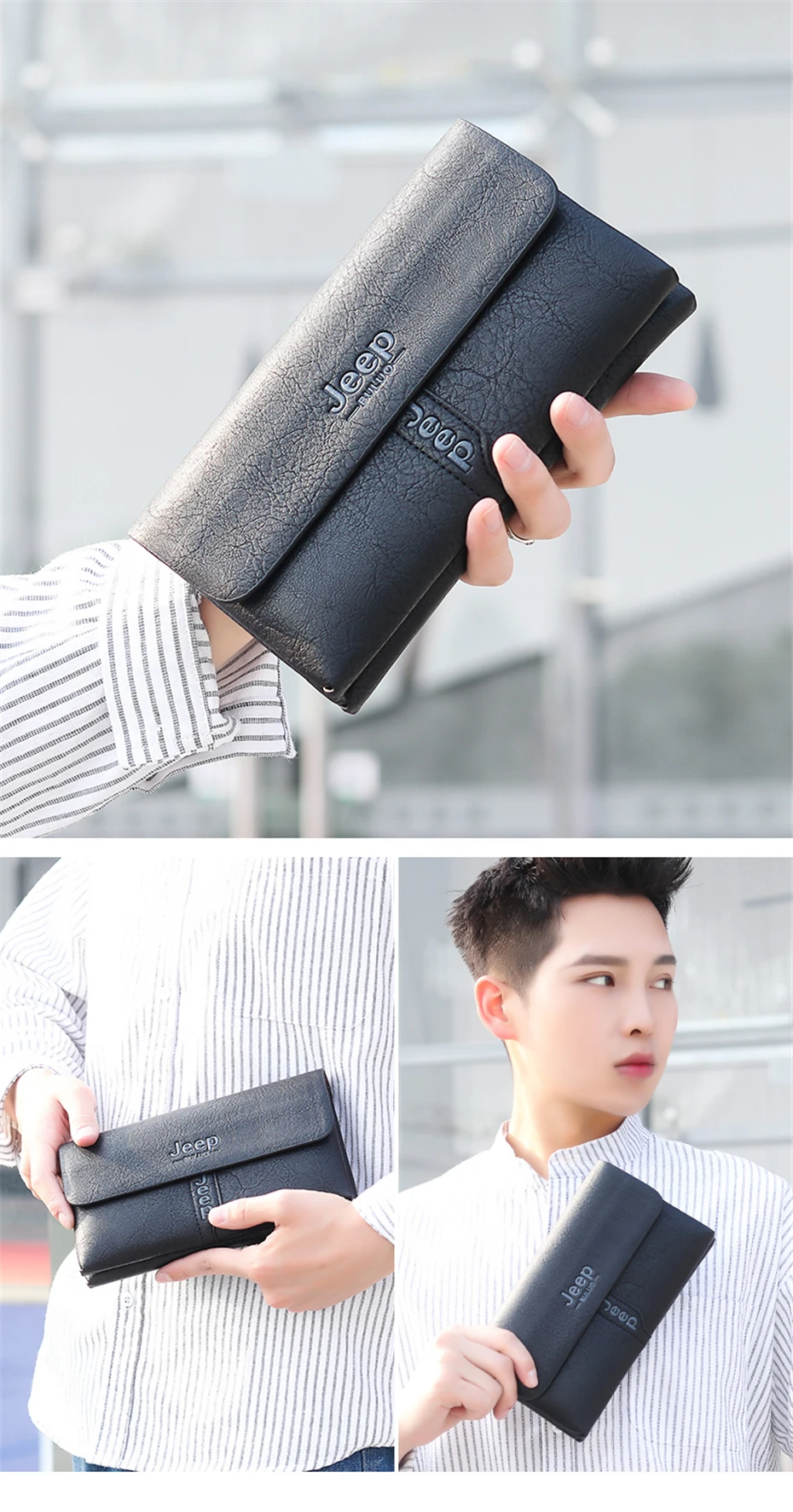 Мужской кошелек JEEP BULUO, клатч, кошелек для мелочи из искусственной кожи, длинная модная сумка в деловом стиле, мужские сумки для карт, мягкая сумка для ключей