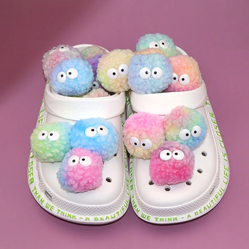 Один шт. меховой помпон Мультяшные большие глаза животные Кроксы ша...