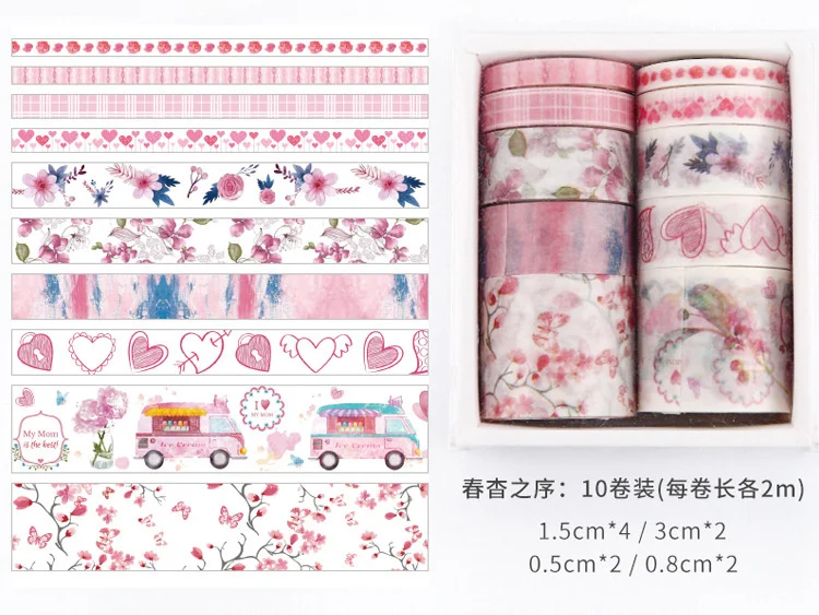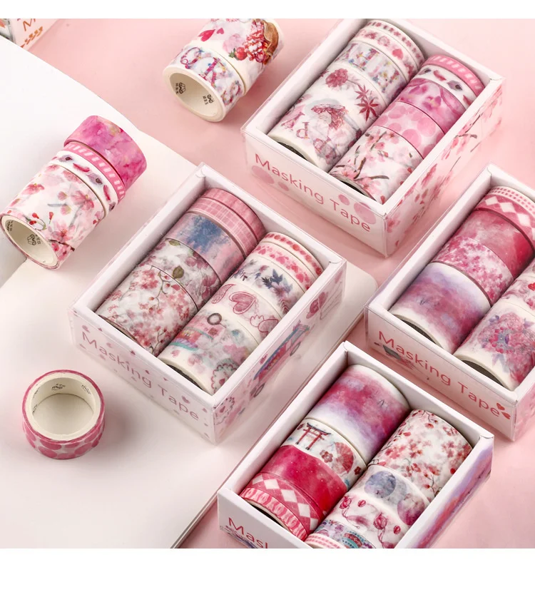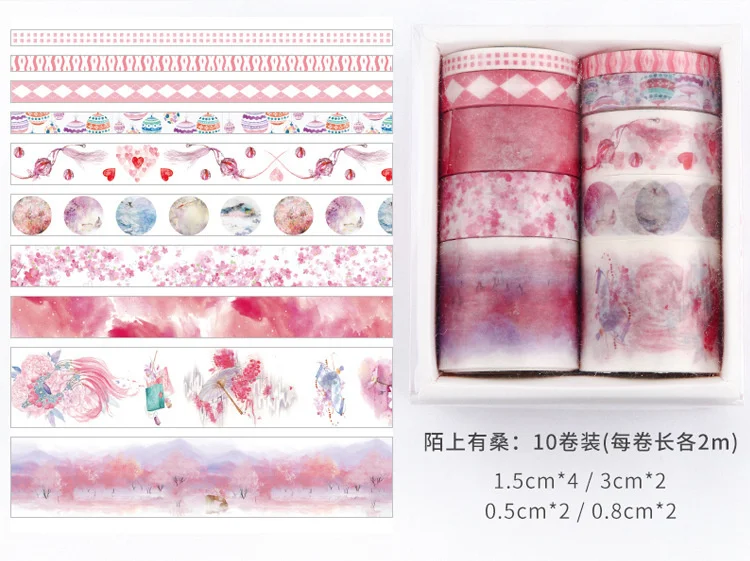 10 рулон набор декоративного скотча Васи завод Розовый вишня в цвет...