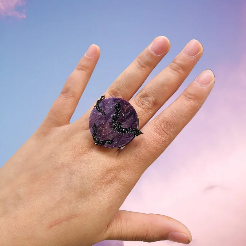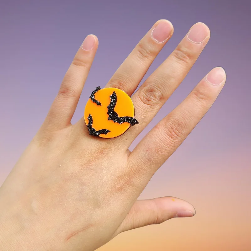 Женское кольцо летучая мышь, готическое ювелирное изделие черного цвета с лазерной регулировкой