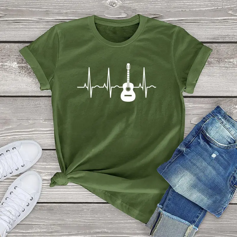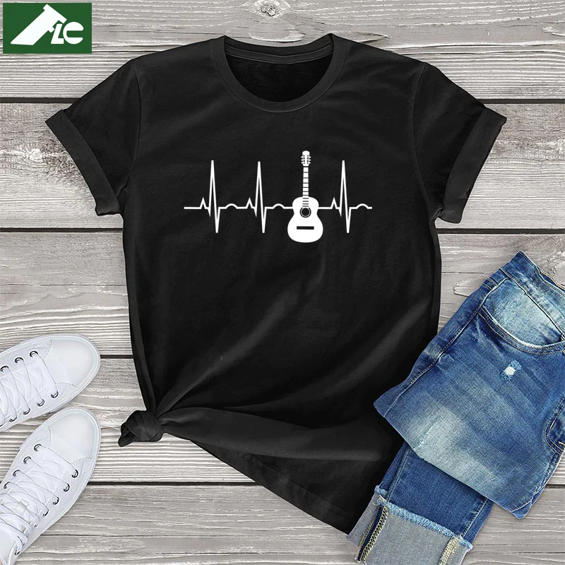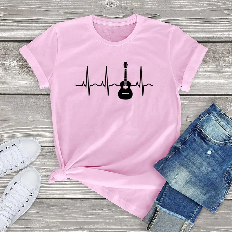 100% хлопок, женская футболка с графической гитарой, для девочек, Харадзюку, сердцебиение, гитара, короткий рукав, футболки, унисекс, Мужская футболка, винтажные топы для девочек