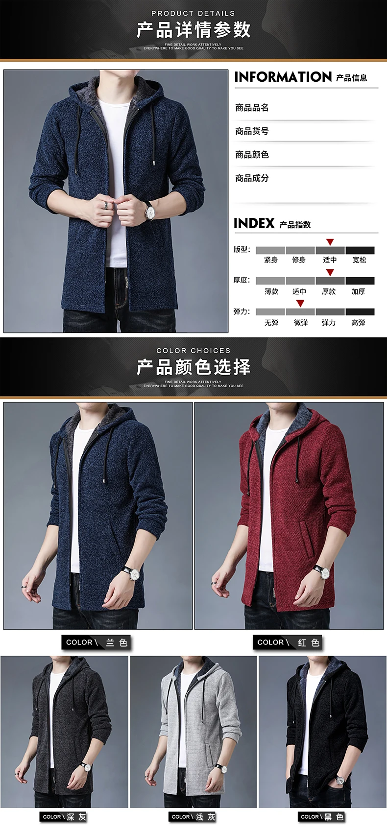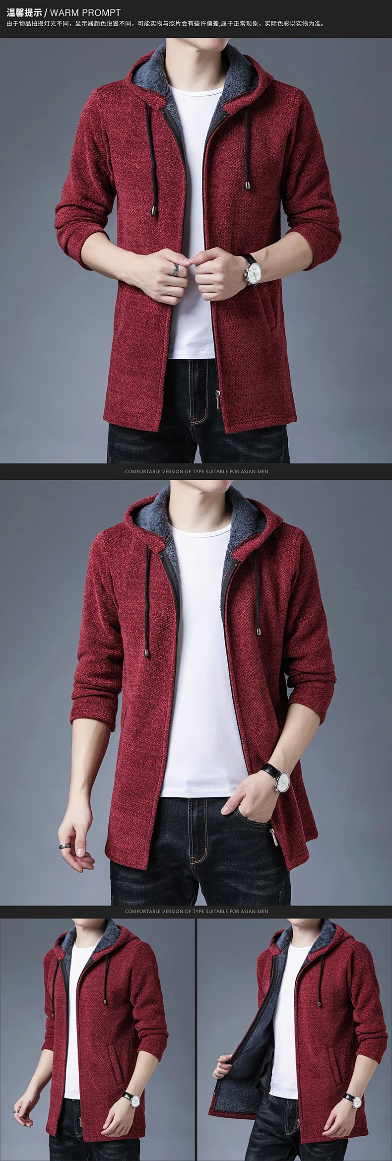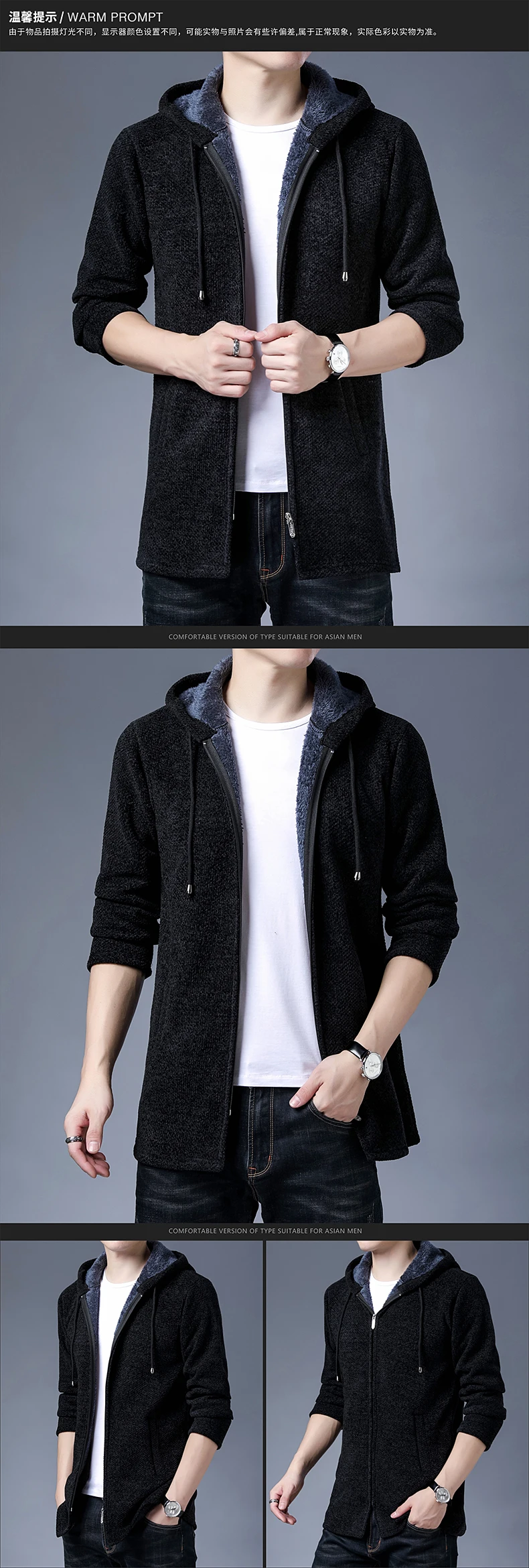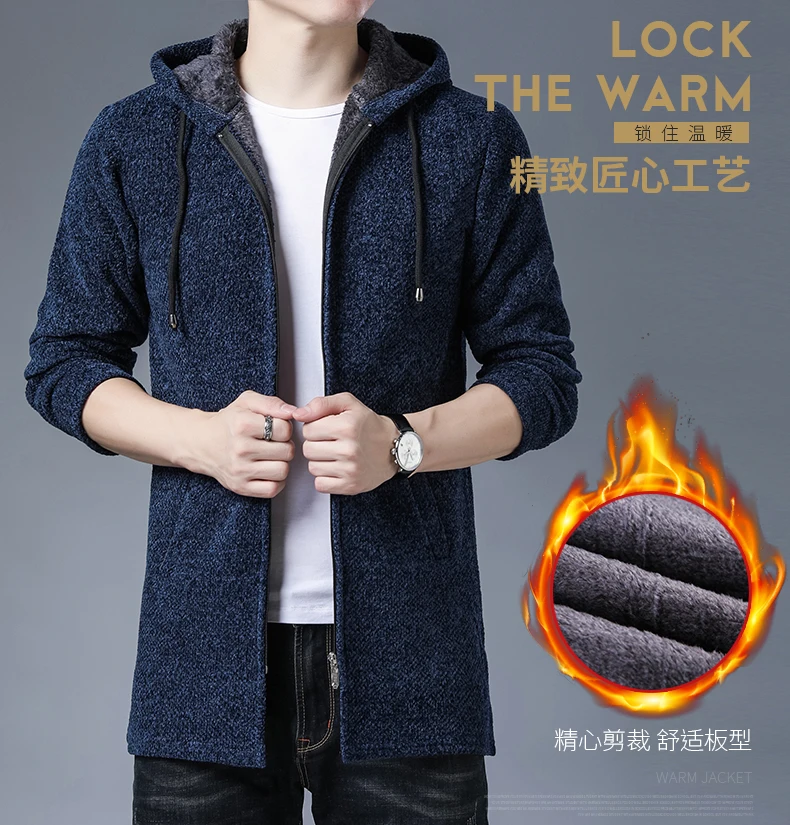 Мужской свитер, кардиган на осень и зиму, толстый флисовый свитер с капюшоном, пальто, брюки, тренчкот, модная новая куртка, Мужская одежда