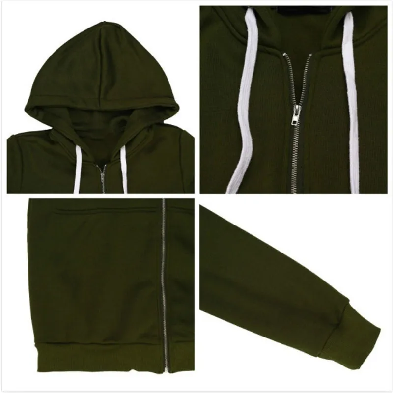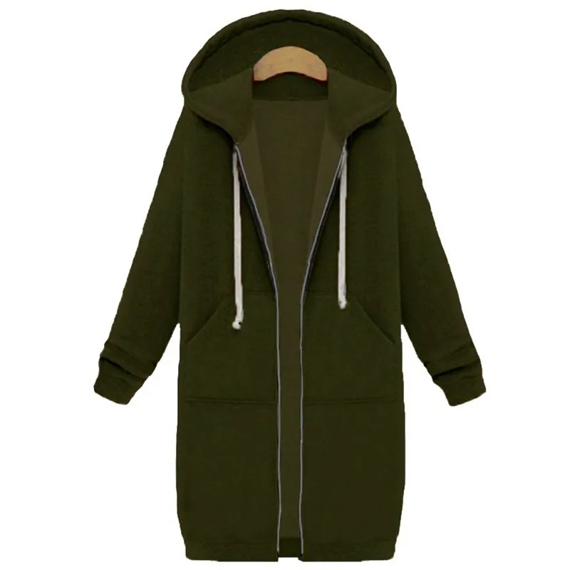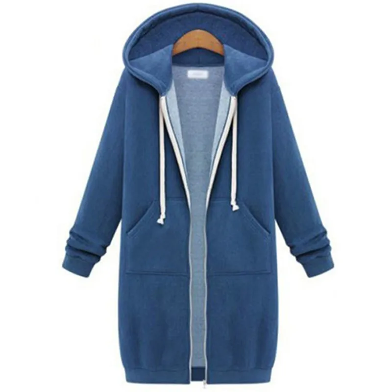 Толстовка Женская на молнии, однотонная, с капюшоном, длинным рукавом, зимняя, теплая, повседневная, размера плюс