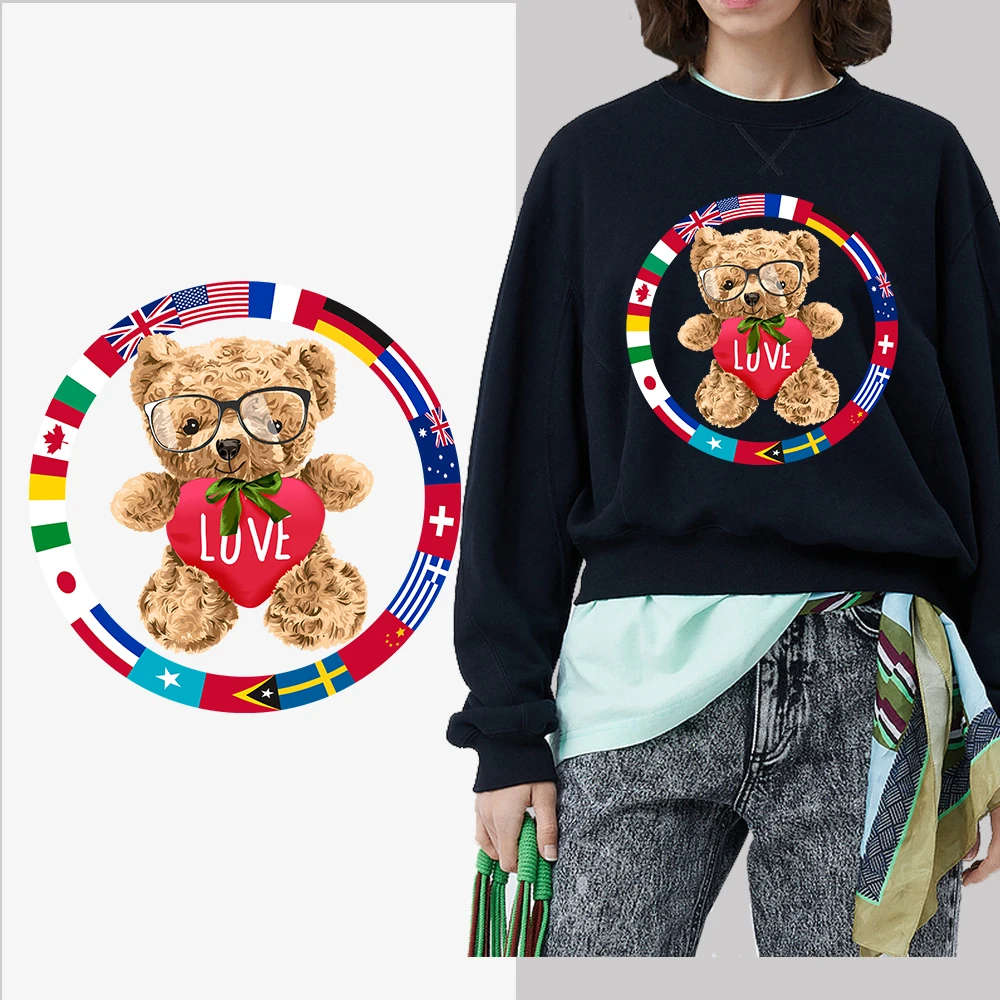 Термопереводные нашивки, стикеры для глажки груди, моющиеся, наклейки "медведь"