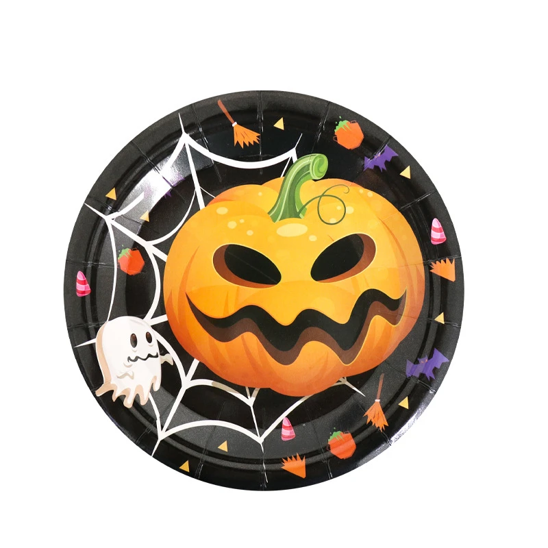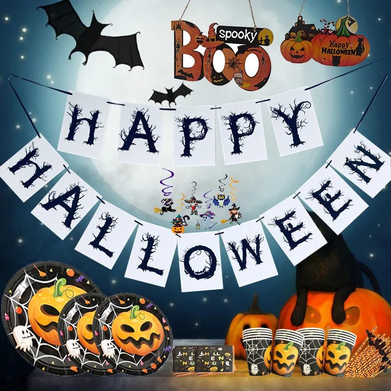 Одноразовая посуда для хэллоуивечерние, бумажная тарелка, чашка, соломенный баннер, украшение для Хэллоуина, поставщик