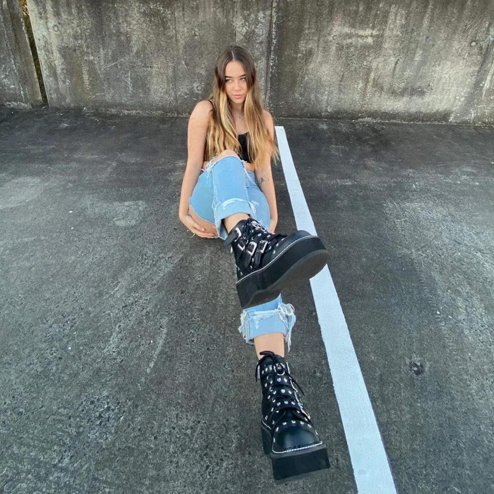2021 г., Новое поступление, ботильоны на танкетке с заклепками в стиле панк, готика, для девочек модная повседневная обувь на шнуровке женская обувь с пряжкой, распродажа