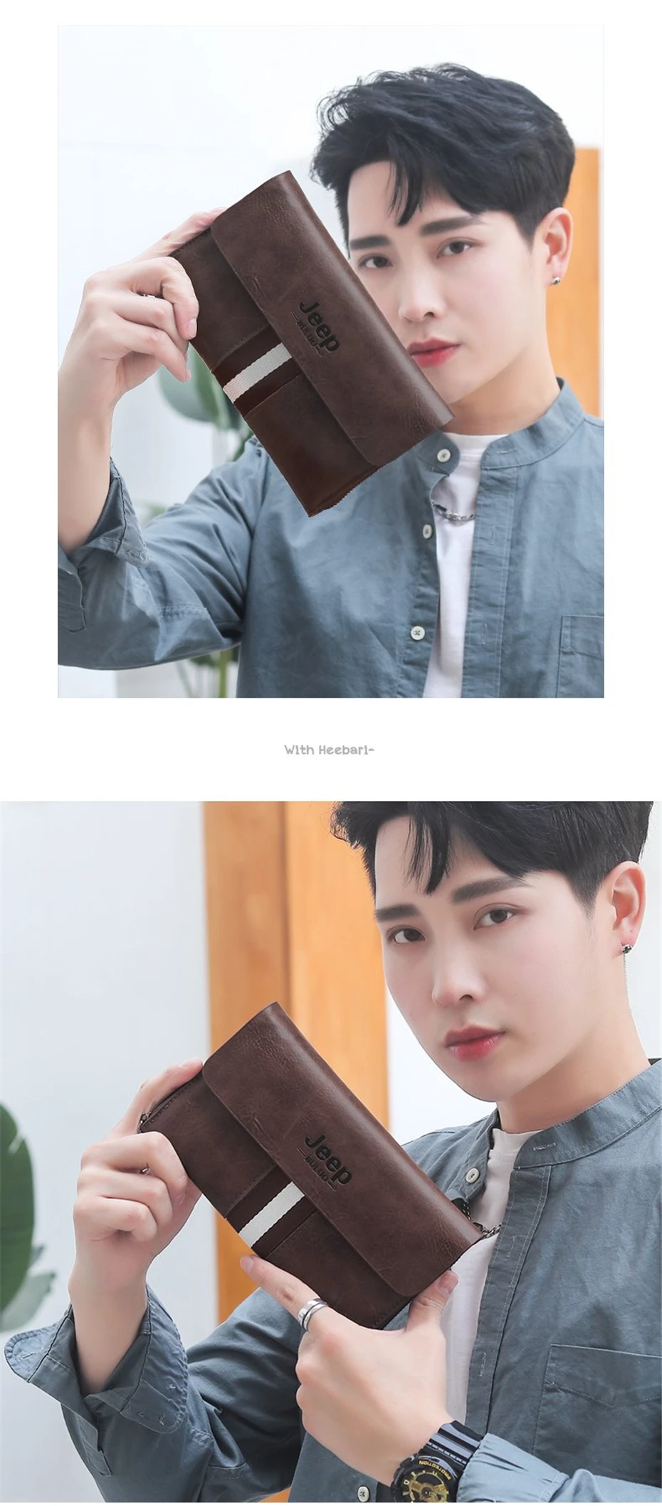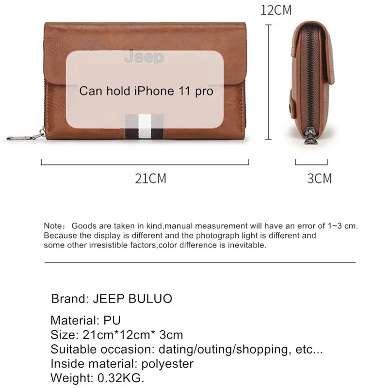 Мужской клатч JEEP BULUO, коричневый кошелек из ПУ кожи, с отделением для карт, деловой удлиненный бумажник, мягкая сумка для ключей, все сезоны, 2019