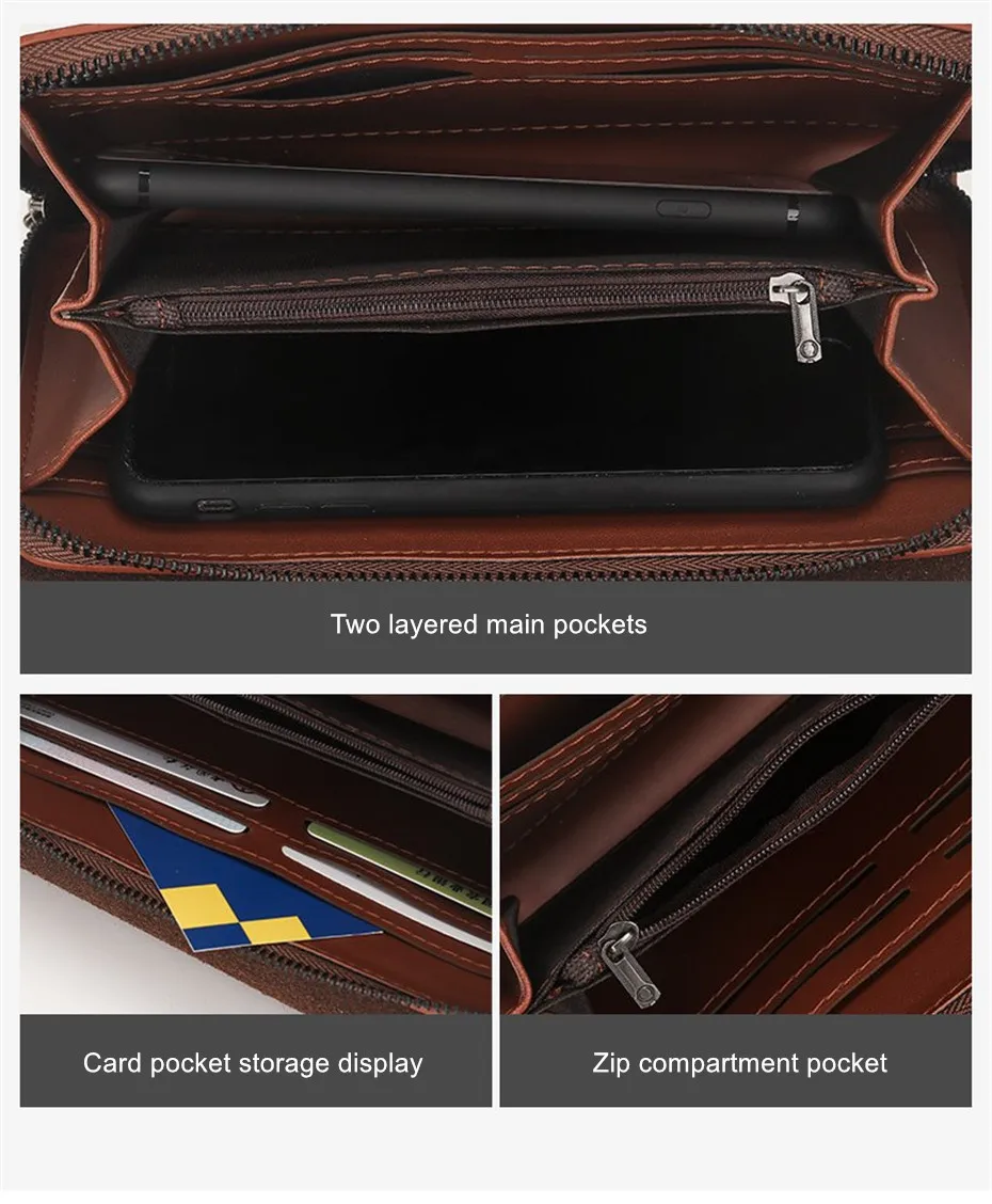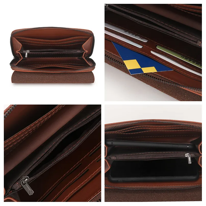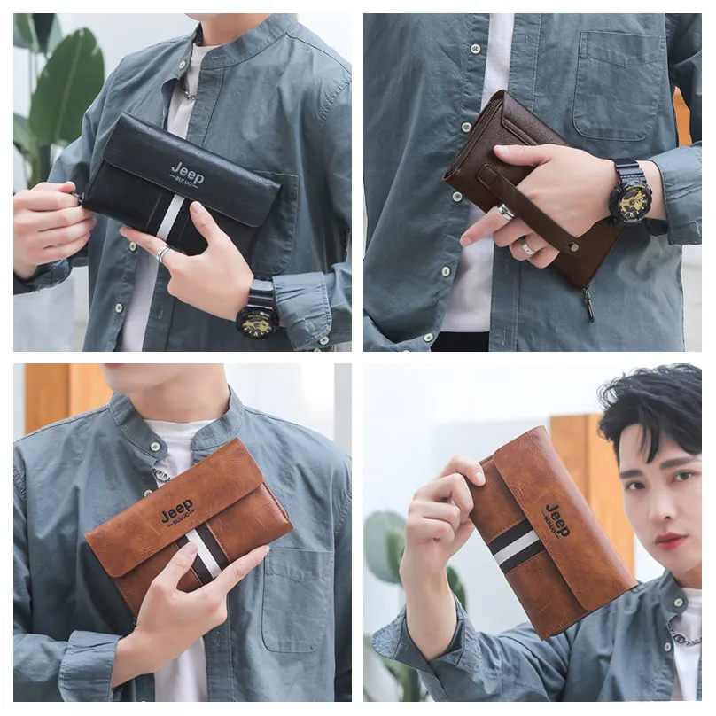 JEEP BULUO, мужской кошелек, клатч, PU, кошелек для монет, длинный, винтажный, деловой стиль, мужская сумка с отделениями для карт, сумки для карт, мягкая сумка для ключей