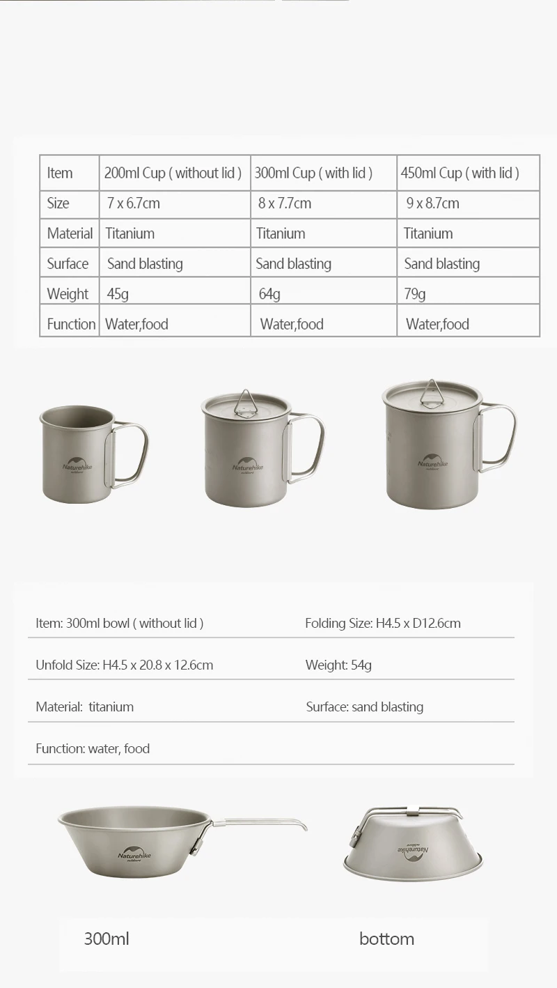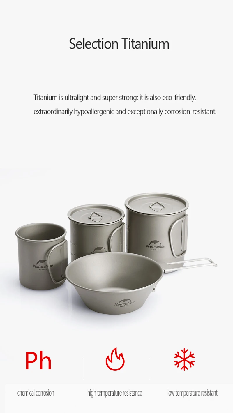 Naturehike легкий набор посуды из титана, складная кружка для воды, посуда для улицы, посуда, столовая чаша NH20CJ005