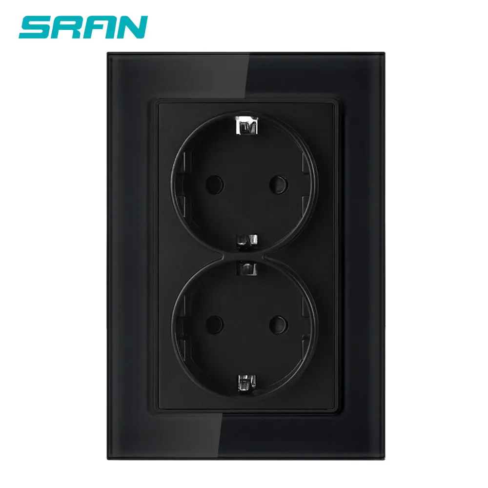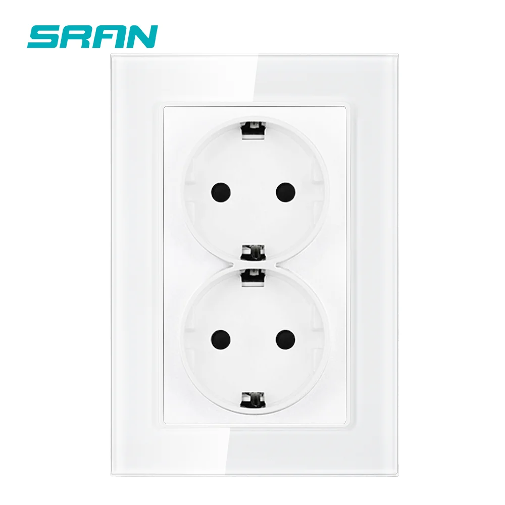 Электрическая розетка SRAN с двойной рамой, 16 А, 250 В, белая стеклянная панель, 122 мм * 82 мм, с железной пластиной и железным креплением, настенная розетка с европейской вилкой