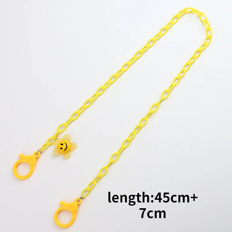 Новинка, милая разноцветная акриловая цепочка со звеньями, смайлик, цветок, мультяшная подвеска, маска, ремешок, шнурок для детей и женщин, 2021