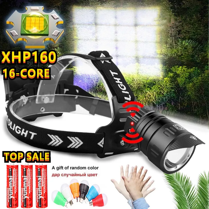 Фонарь налобный светодиодный, XHP160-16Core лм, с ИК-датчиком, USB, перезаряжаемый