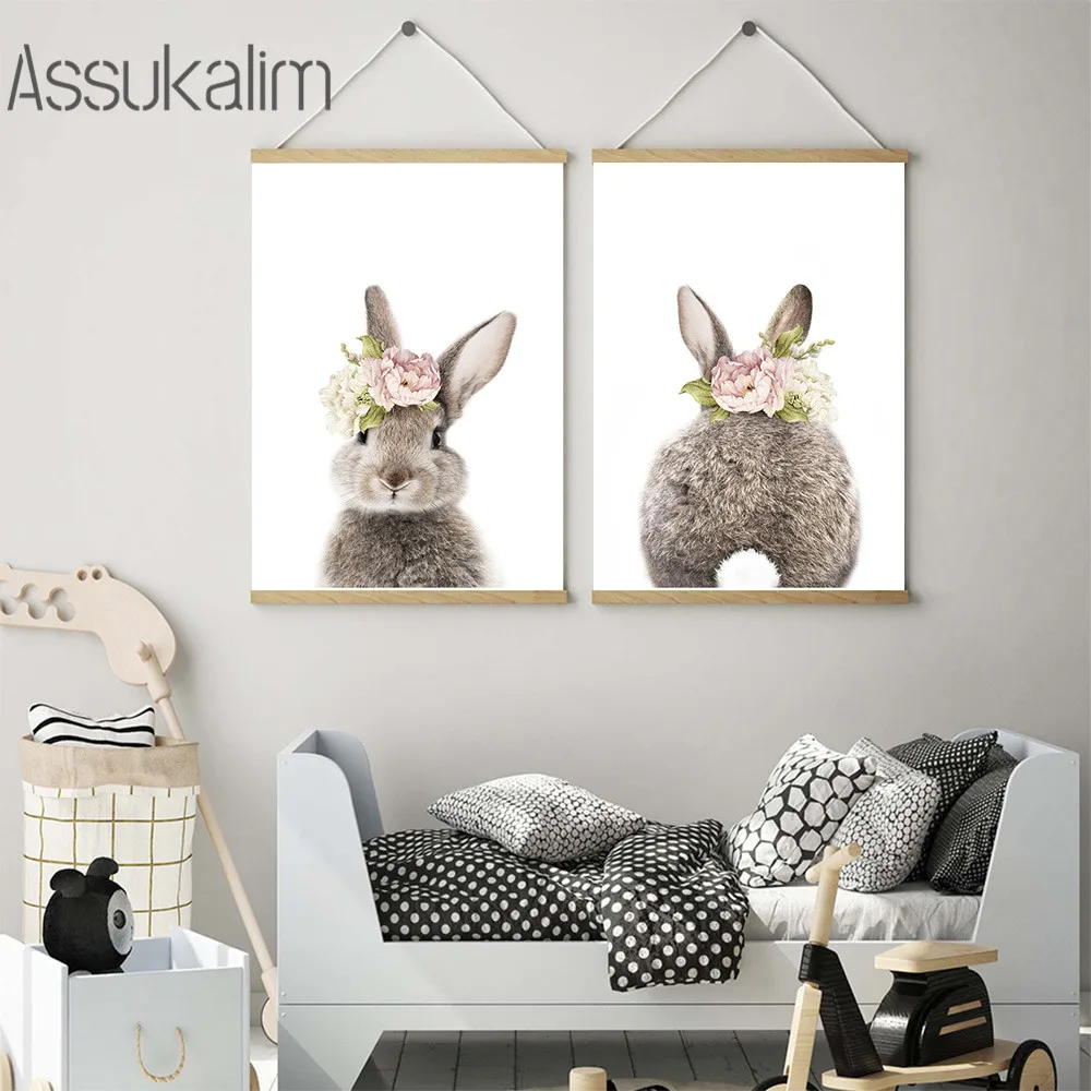 Плакат с цветами и животными, принт фламинго, кролик, панда, плакат...