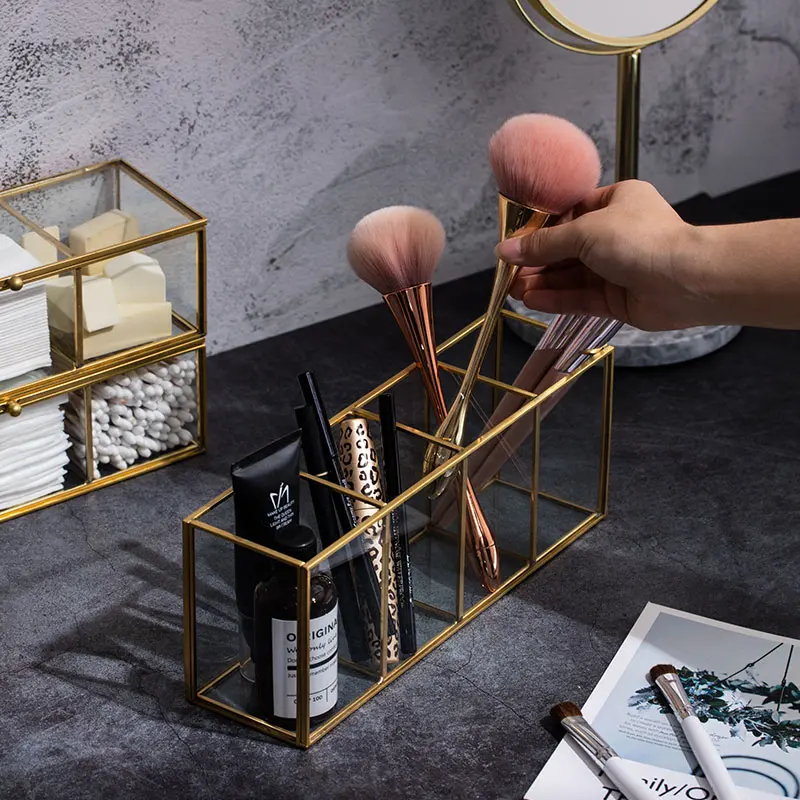 Роскошная прозрачная стеклянная коробка для макияжа, коробка для хранения косметики, органайзер для кистей для макияжа, карандаш, держатель для помады, органайзер для инструментов для макияжа, чехол