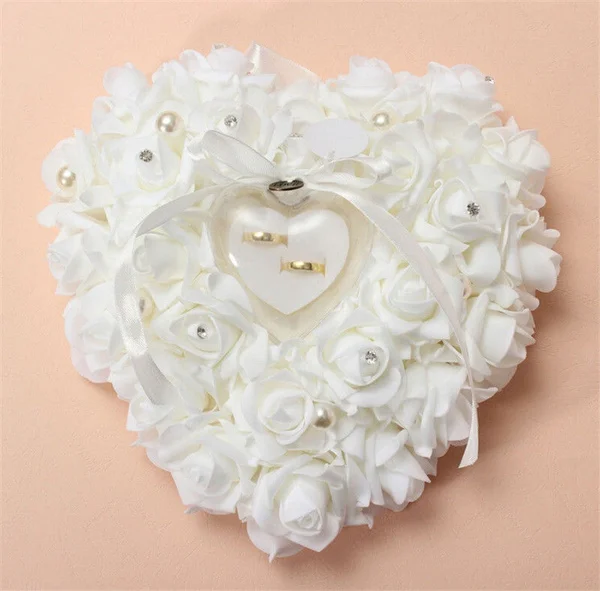 Романтическая свадьба слоновая кость сатин Кристалл кольцо предъявителя Подушка кольцо Подушка в форме сердца для помолвки предложение Свадебный декор