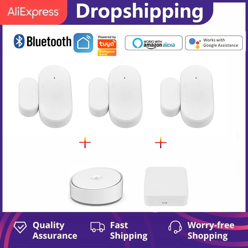 Смарт-датчик двери Tuya с Bluetooth, детекторы открытиязакрытия помещения, сигнализация для умного дома, совместим с приложением Smart Life Tuya, с шлюзом