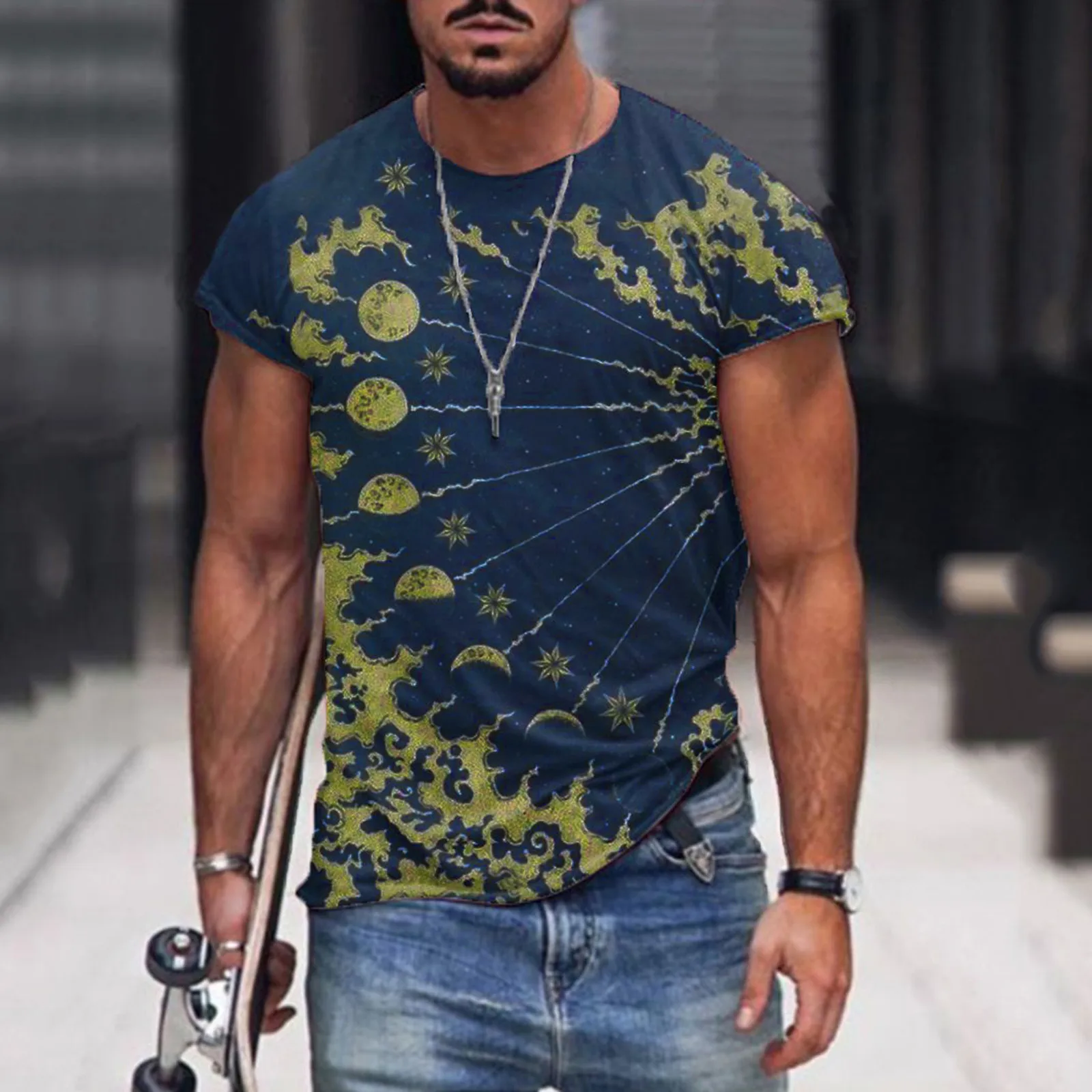 Мужская летняя футболка с круглым вырезом, коротким рукавом и 3D-пр...