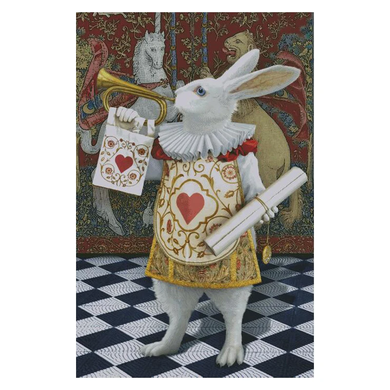 Золотая коллекция, шикарный Набор для вышивки крестиком, кролик Батлер, кролик, музыкант, дует Рогом, добро пожаловать, бесплатная доставкаБесплатная доставка