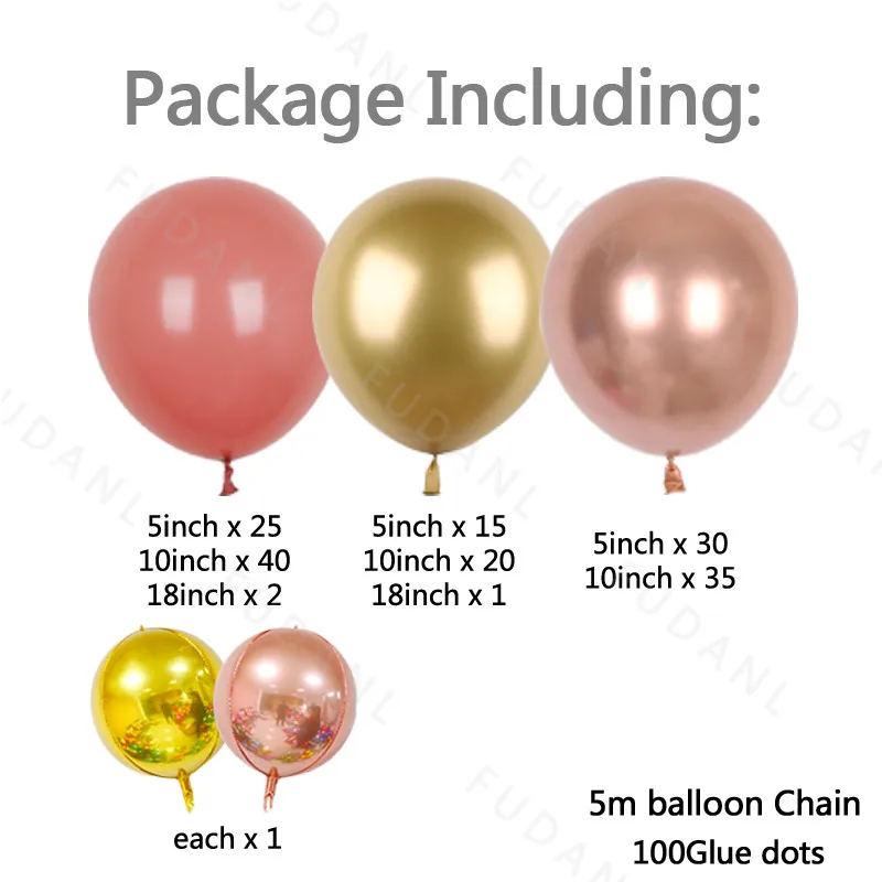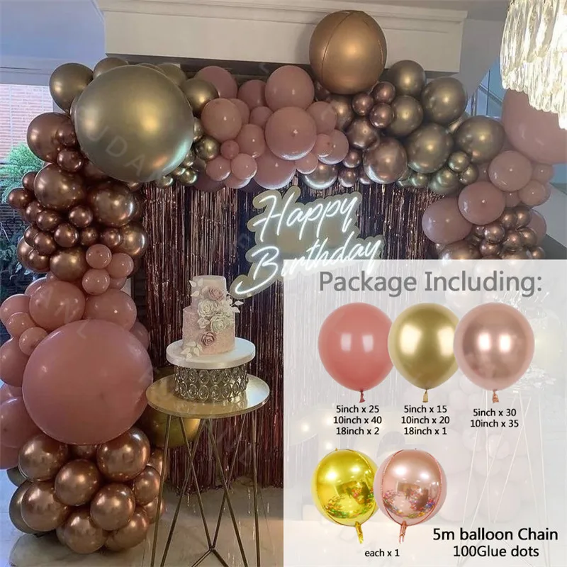 172 шт., набор Ретро розовых фотоэлементов, 4D, розовое золото, металлик, хромированное золото, украшение для дня рождения
