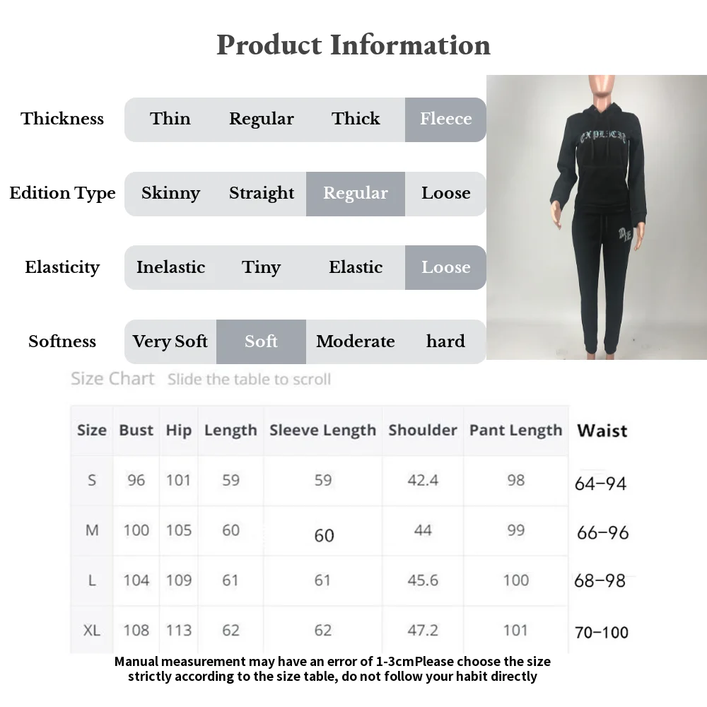 Женский комплект с толстовкой; Спортивный костюм из двух предметов; Бархатный свитер с буквенным принтом для девочек