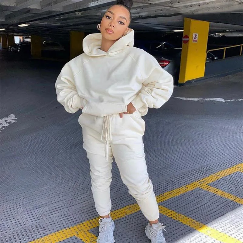 Женский спортивный костюм с капюшоном, женский элегантный однотонный комплект для женщин, теплая толстовка с капюшоном