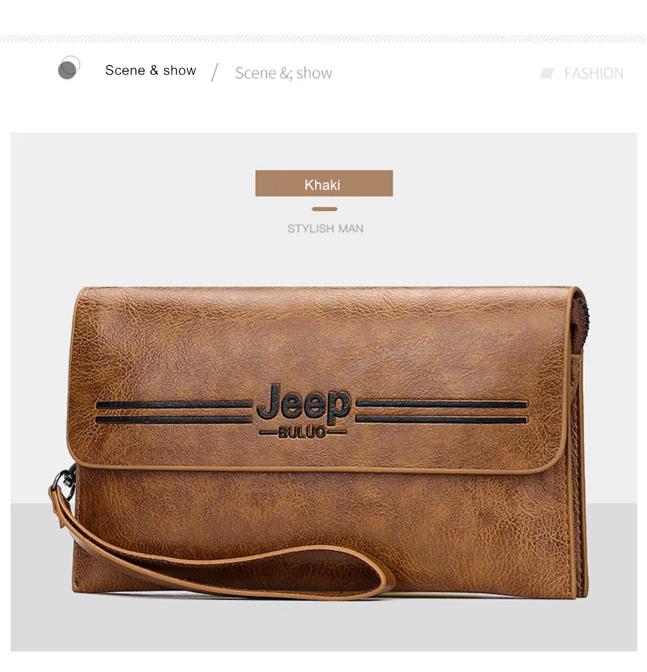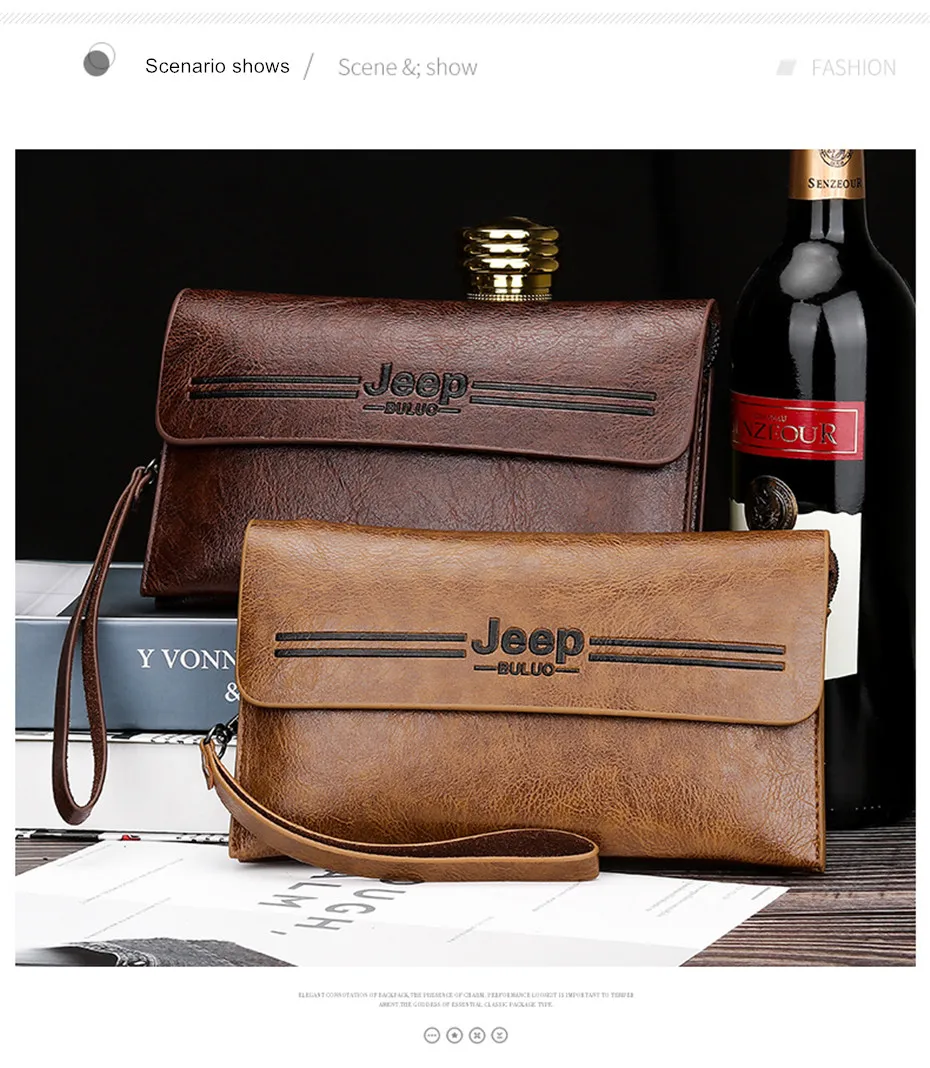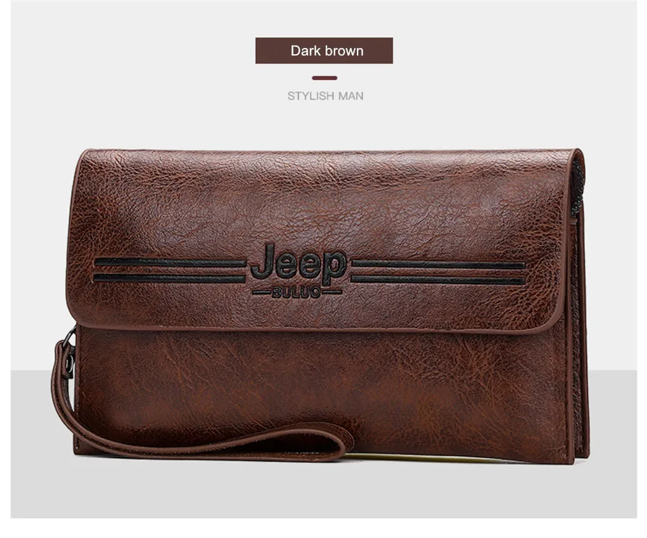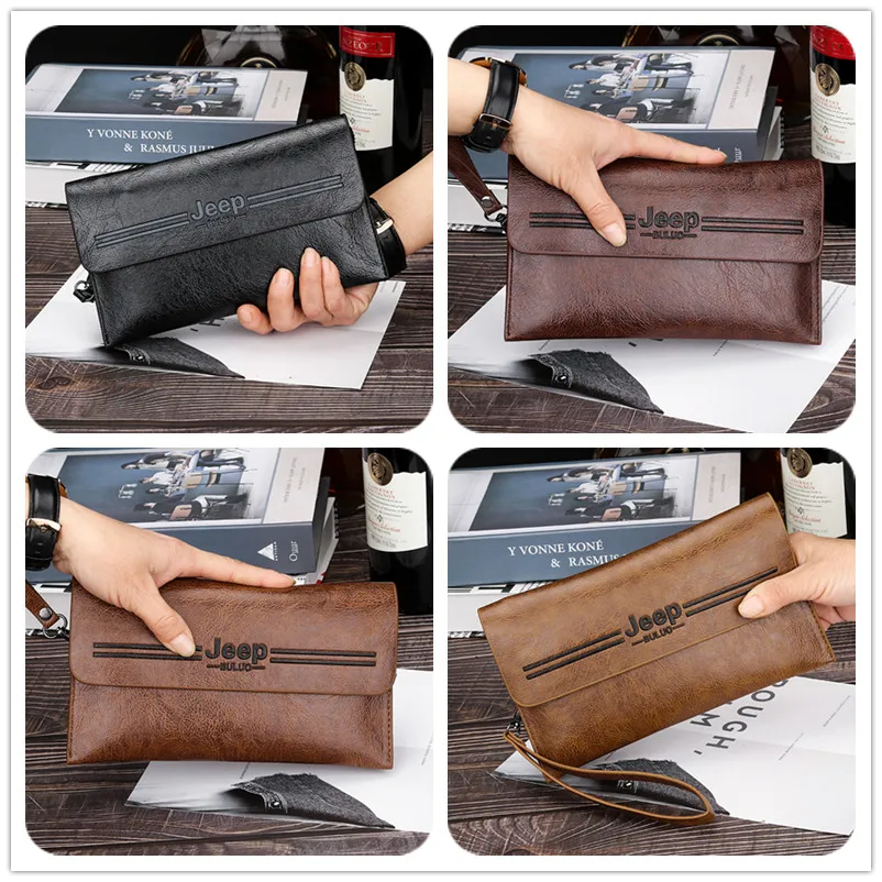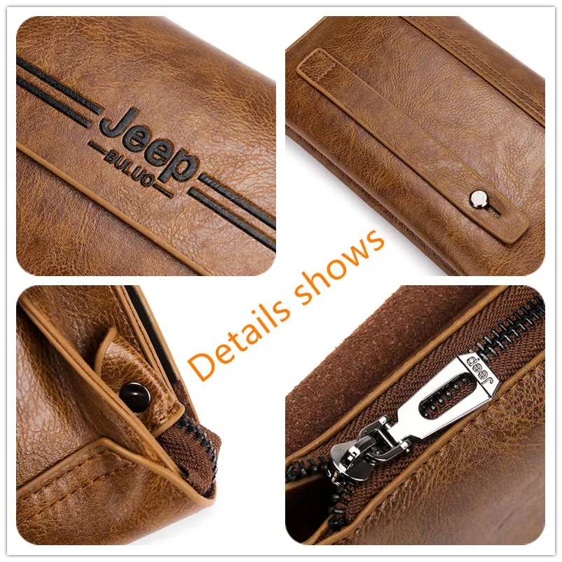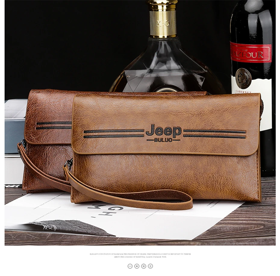 JEEP BULUO, брендовые клатчи, сумки, мужская сумка для телефона, высокое качество, искусственная кожа, черная ручка, кошельки, мужские длинные коричневые отделения для карт, новая сумка