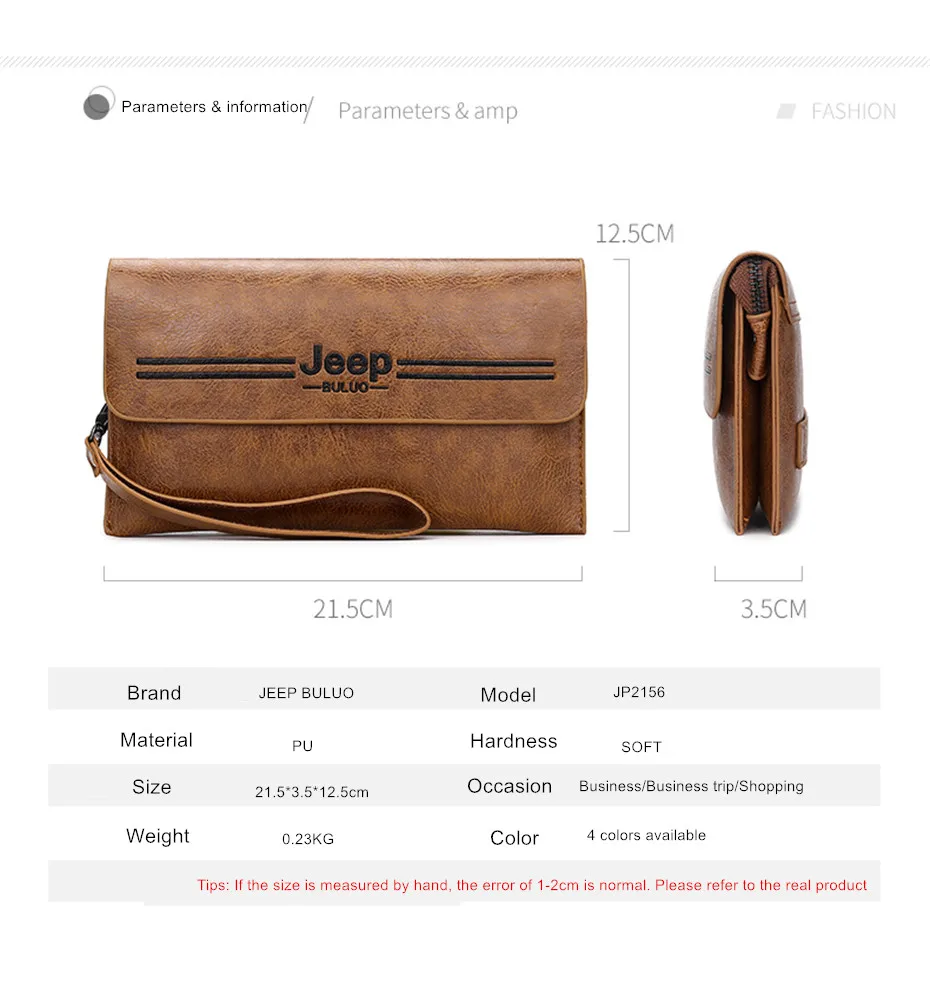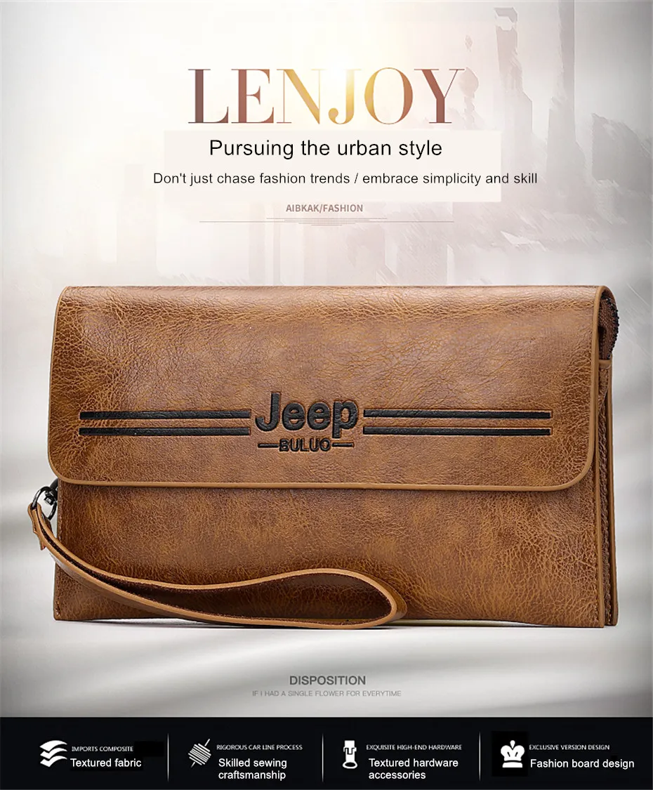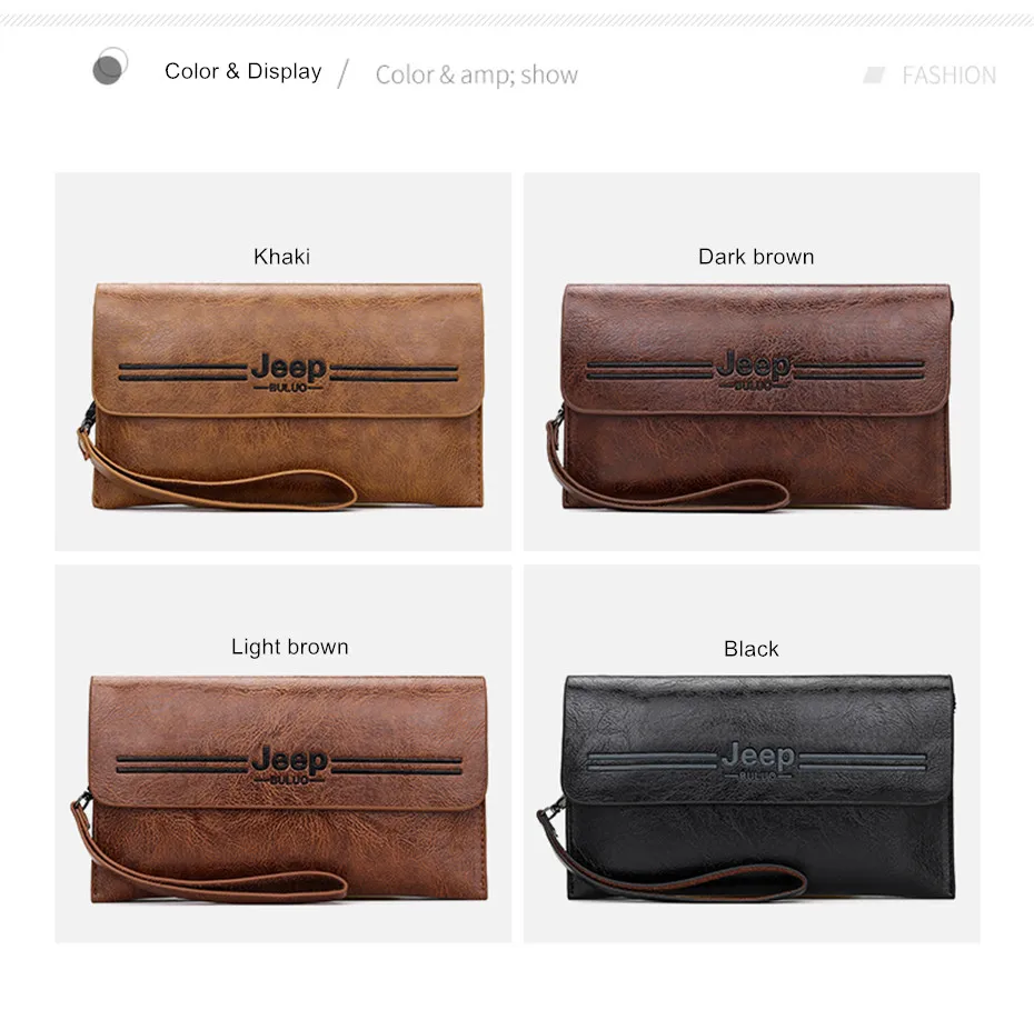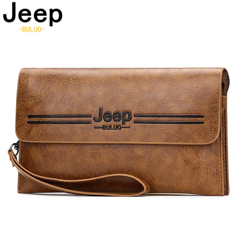 Брендовые клатчи JEEP BULUO, мужская сумка для телефона, высококачественные кошельки из искусственной кожи с черными ручками, длинные коричневые отделения для карт, новая сумка