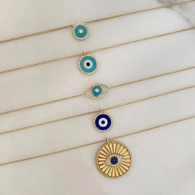 Ожерелье с подвеской Evil Eyes для женщин, винтажное этническое колье с кулоном турецкий голубой глаз, ключицы ожерелья цепи, готические богемные украшения