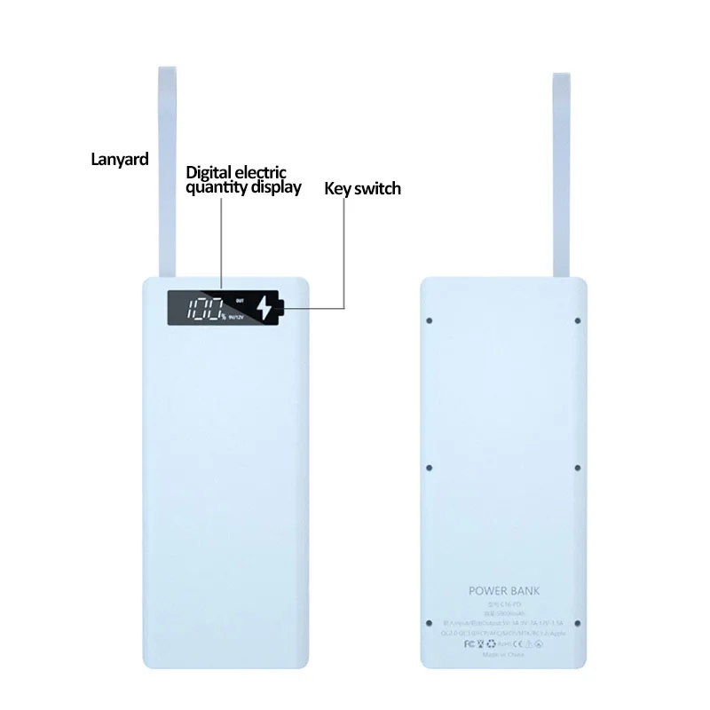 Чехол для аккумулятора 16*18650, чехол сделай сам с внешним аккумулятором, чехол с двумя USB и ЖК-дисплеем, поддержка быстрой и беспроводной зарядки, сделай сам, чехол для аккумулятора