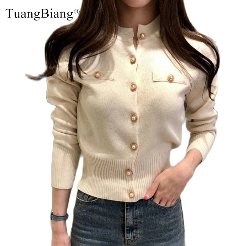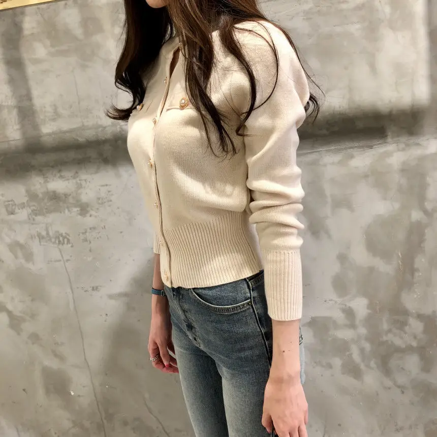Кардиган женский трикотажный однобортный, в стиле ретро, с длинным рукавом и пуговицами, для весны, 2021
