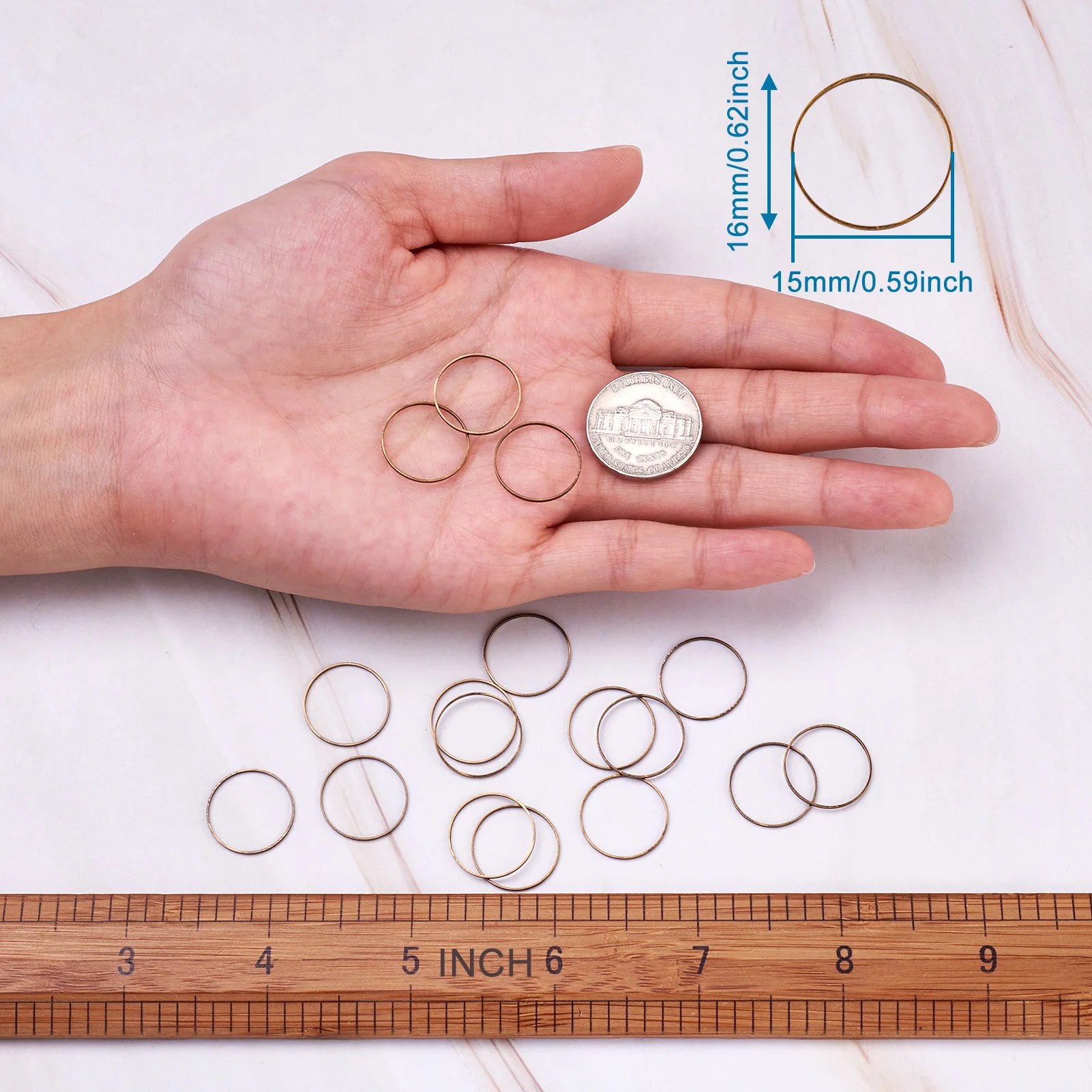 100 шт.компл., латунные соединительные кольца под античную бронзу, круг цвет золотой круглые обручи, соединитель, аксессуары для серег, 16 мм