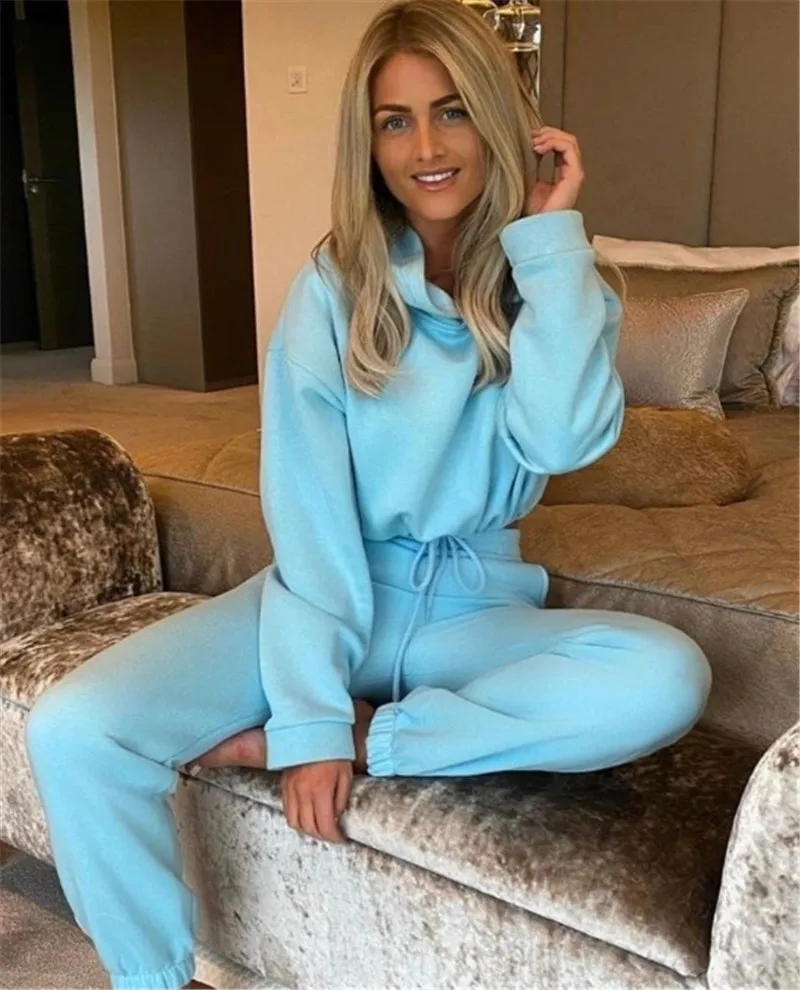 E-girl женский элегантный однотонный комплект с толстовкой свитшоты и длинные брюки Y2K модные комплекты TwoPiece женские джоггеры спортивные свитшоты с капюшоном